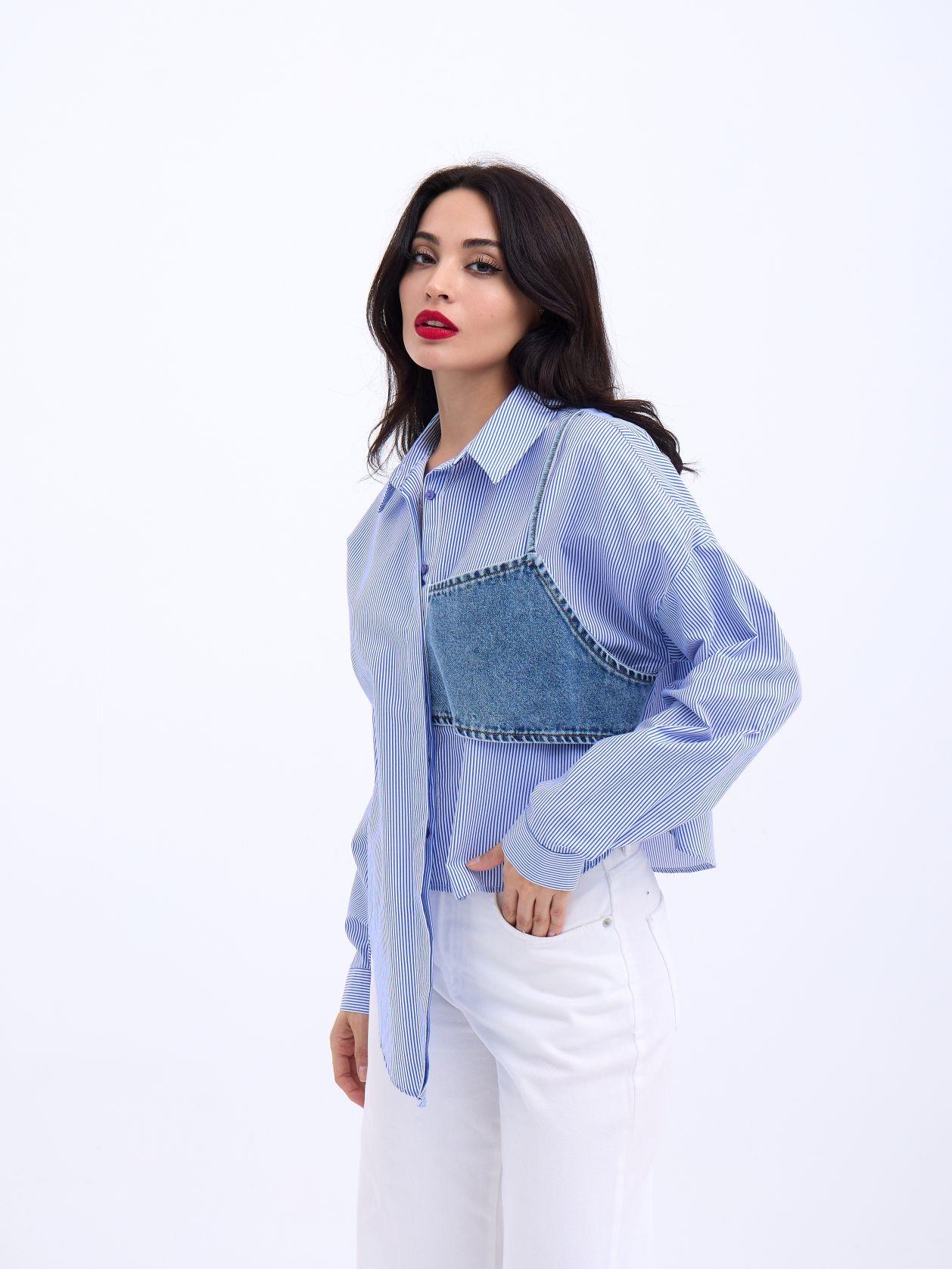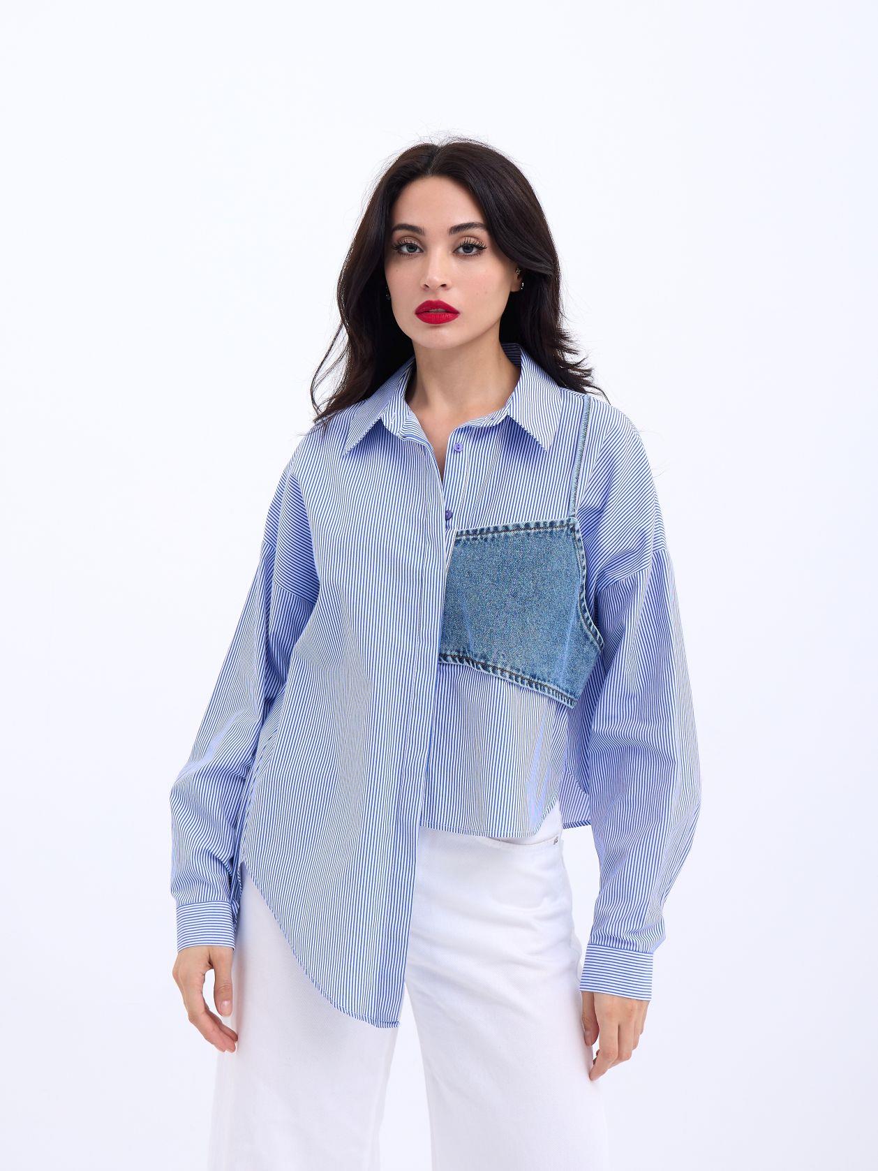 5419 GÖMLEK-MAVİ BEYAZ ÇİZGİLİ