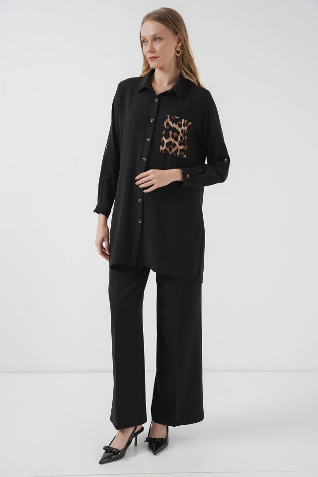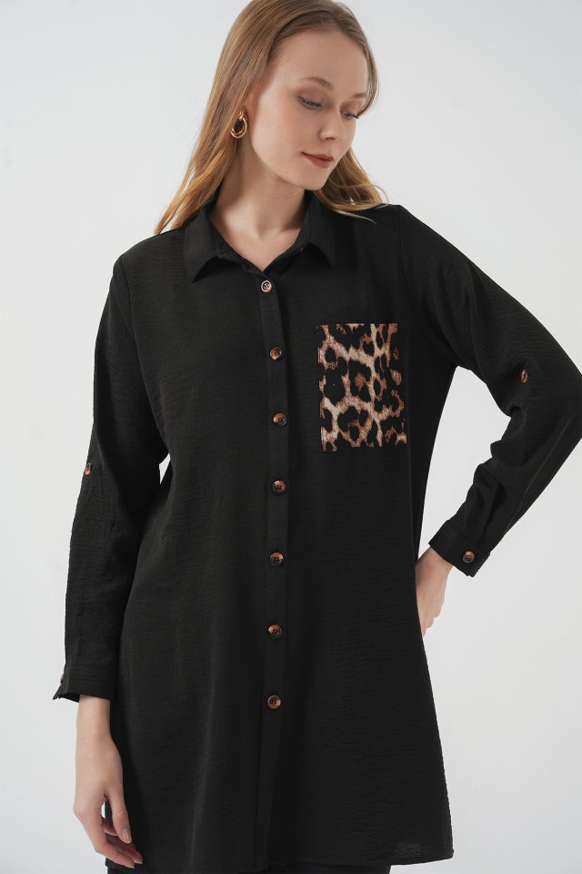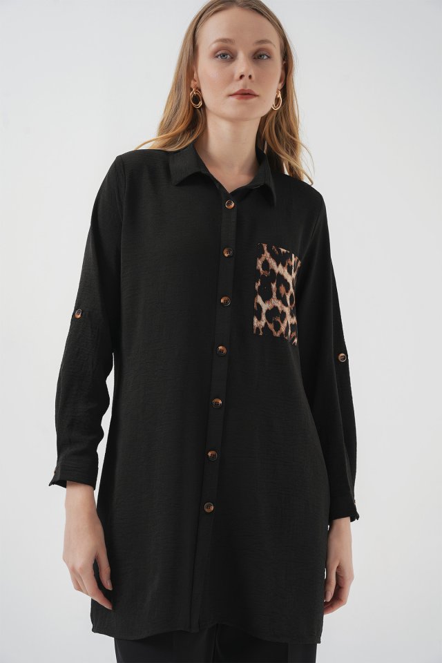 5851 Cep Detaylı Gömlek Tunik – Siyah