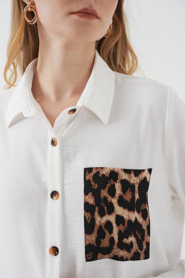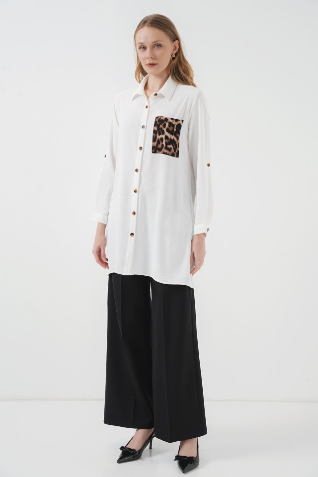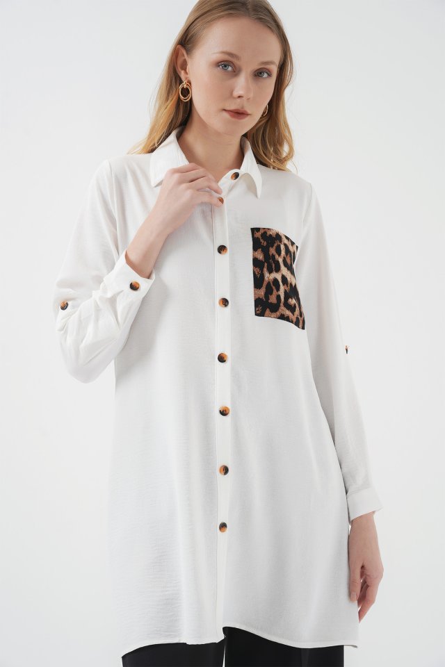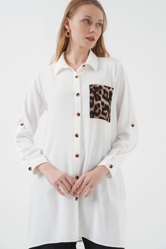 5851 Cep Detaylı Gömlek Tunik – Beyaz