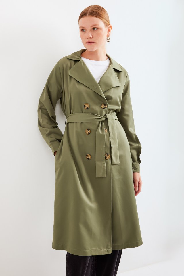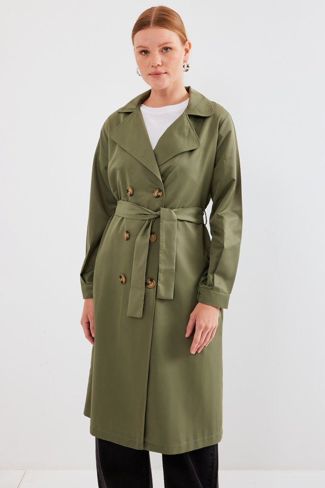 5853 Kruvaze Yaka Trençkot – Haki
