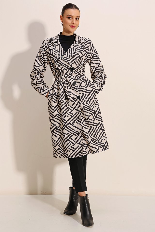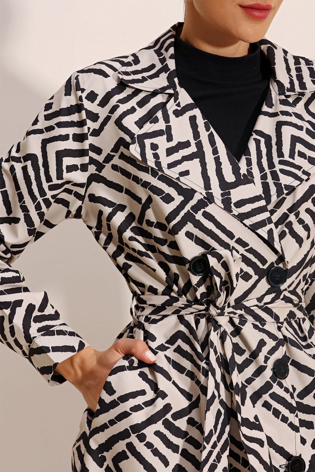 5853 Kruvaze Yaka Trençkot – Siyah