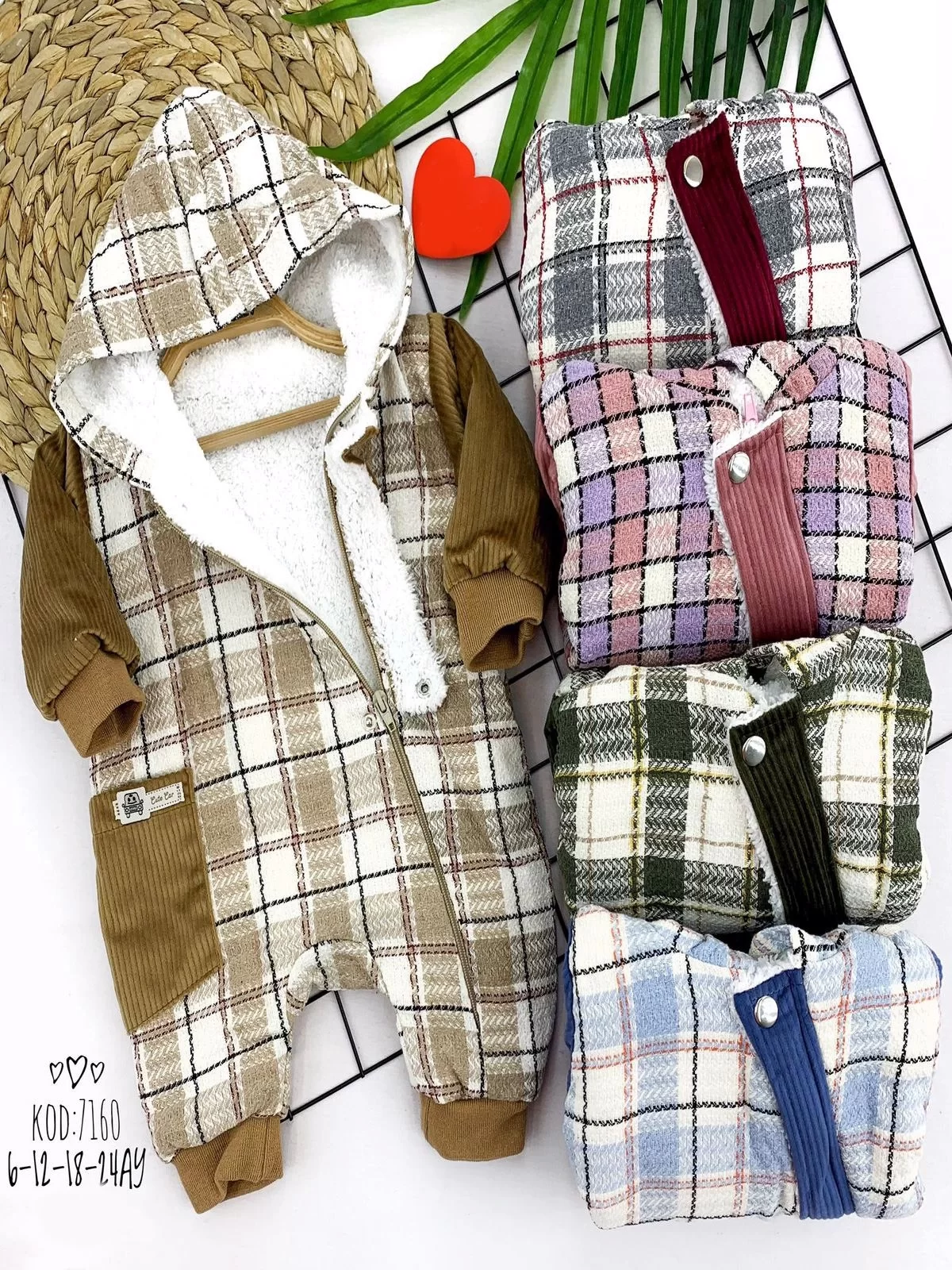 / 6-12-18-24 Ay İçi Kuzulu Ef Boy Fermuarlı Kapşonlu Erkek Bebek Tulumu Bej