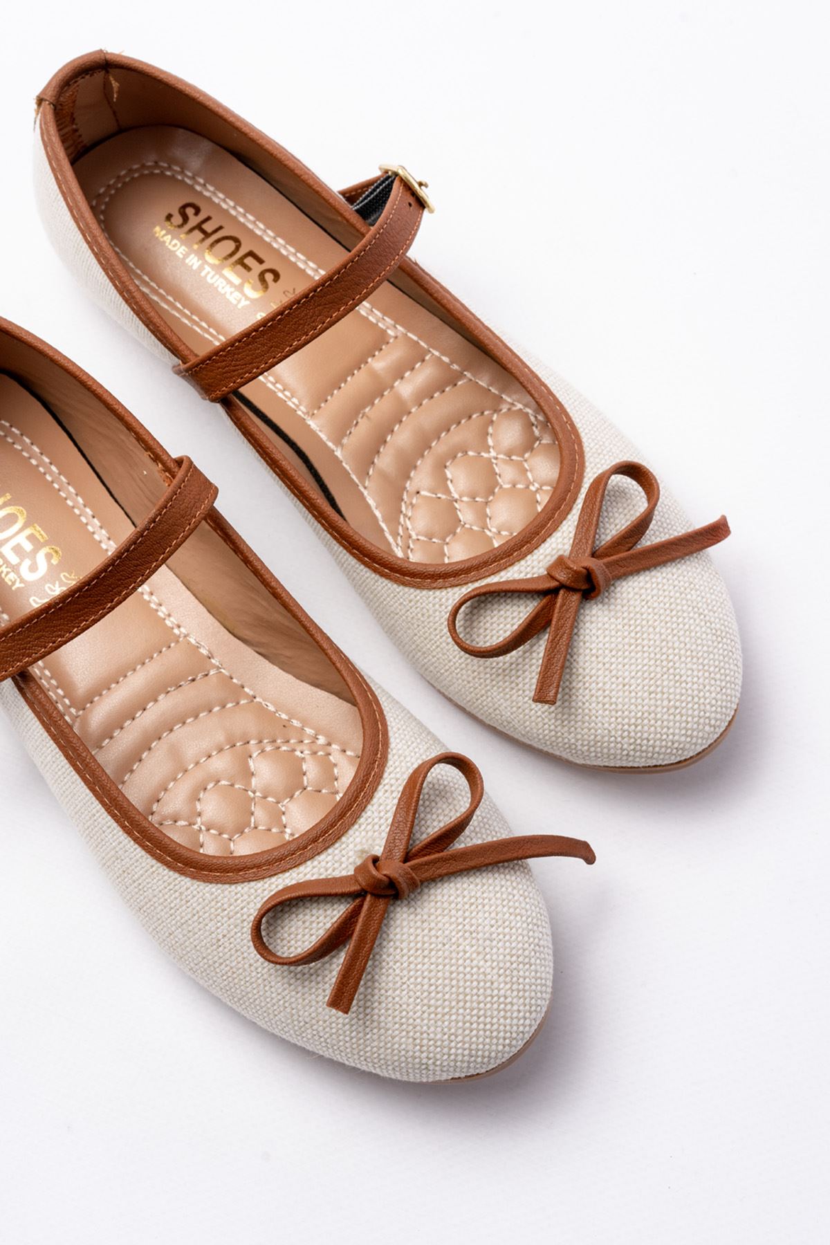 6321 Bej Keten Günlük Baret Tokalı Bayan Babet