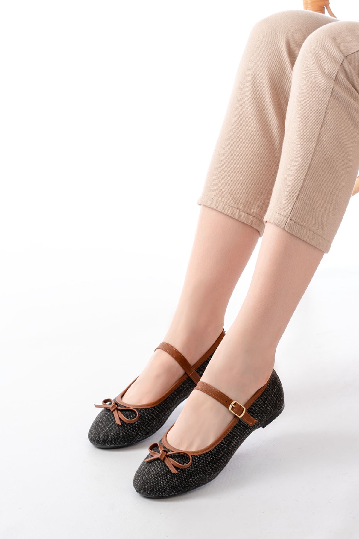 6321 Siyah Keten Günlük Baret Tokalı Bayan Babet
