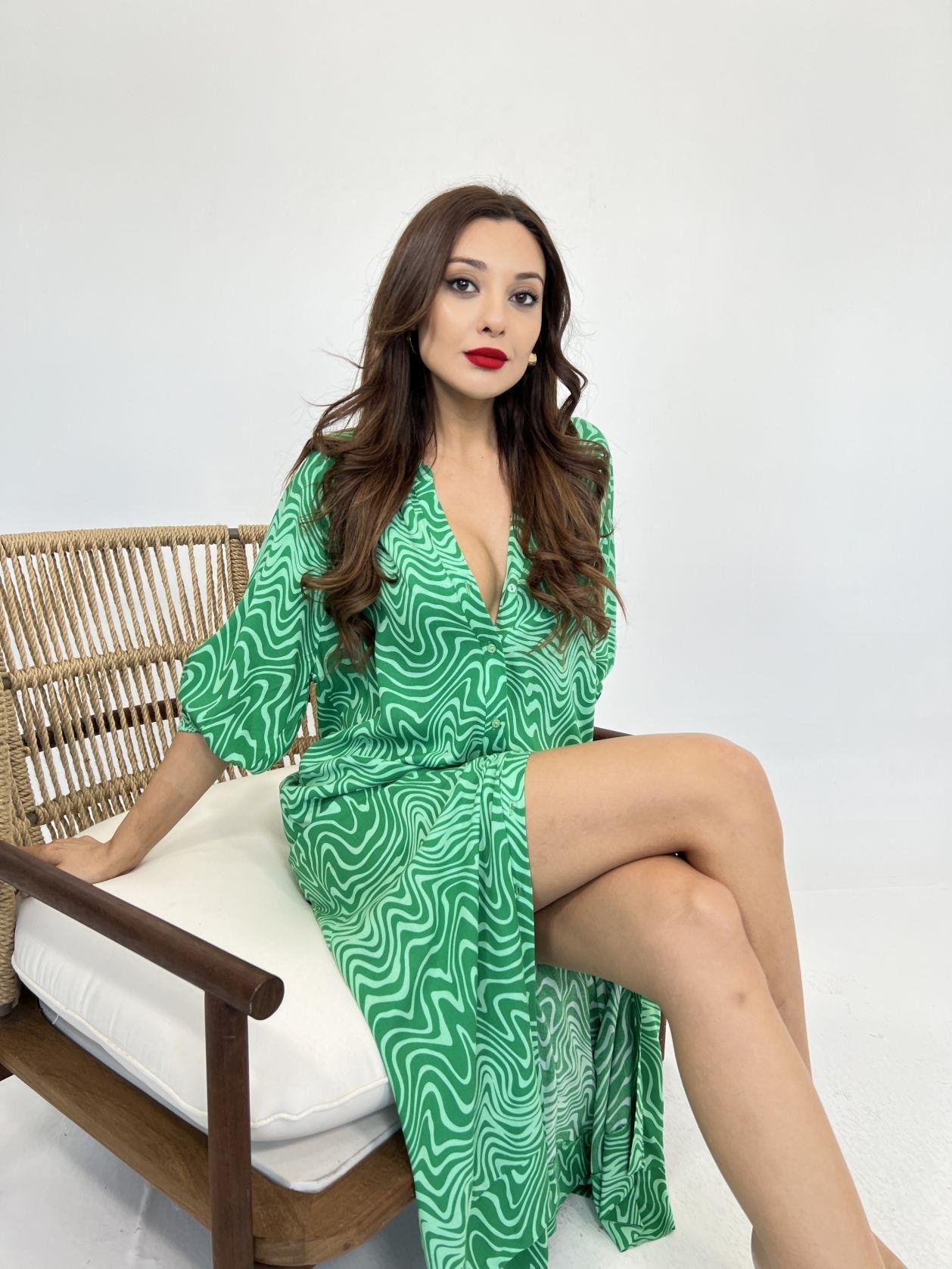 Modelin Ölçüleri: Boy:165, Kg:55, Göğüs:90, Bel:72, Kalça: 100
