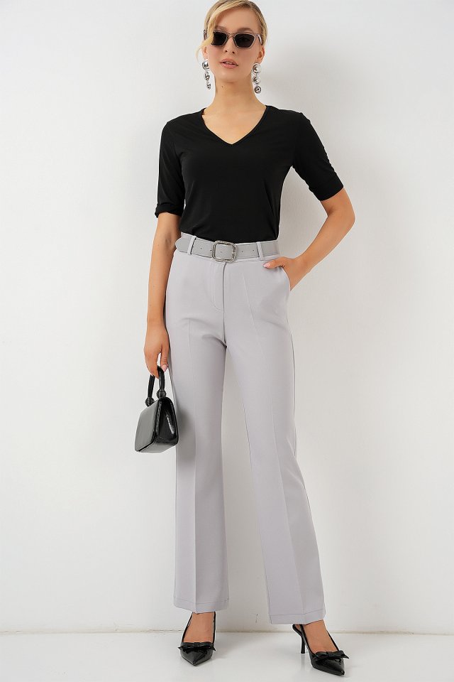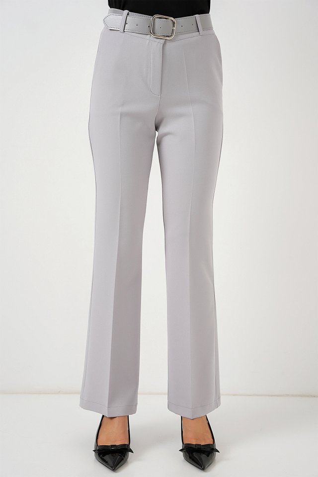 6538 Kemerli İspanyol Paça Pantolon – Gri