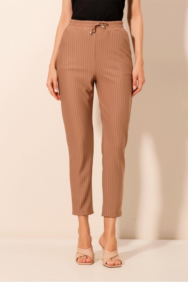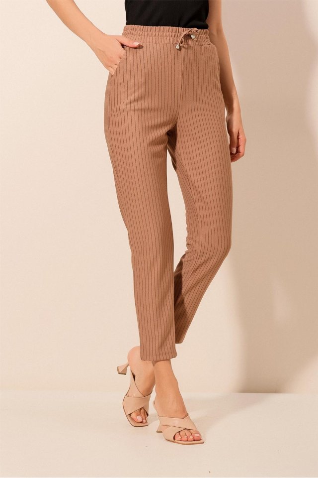 6560 Beli Lastikli Bağcıklı Pantolon – Camel