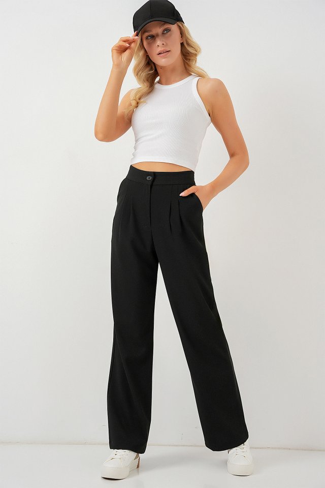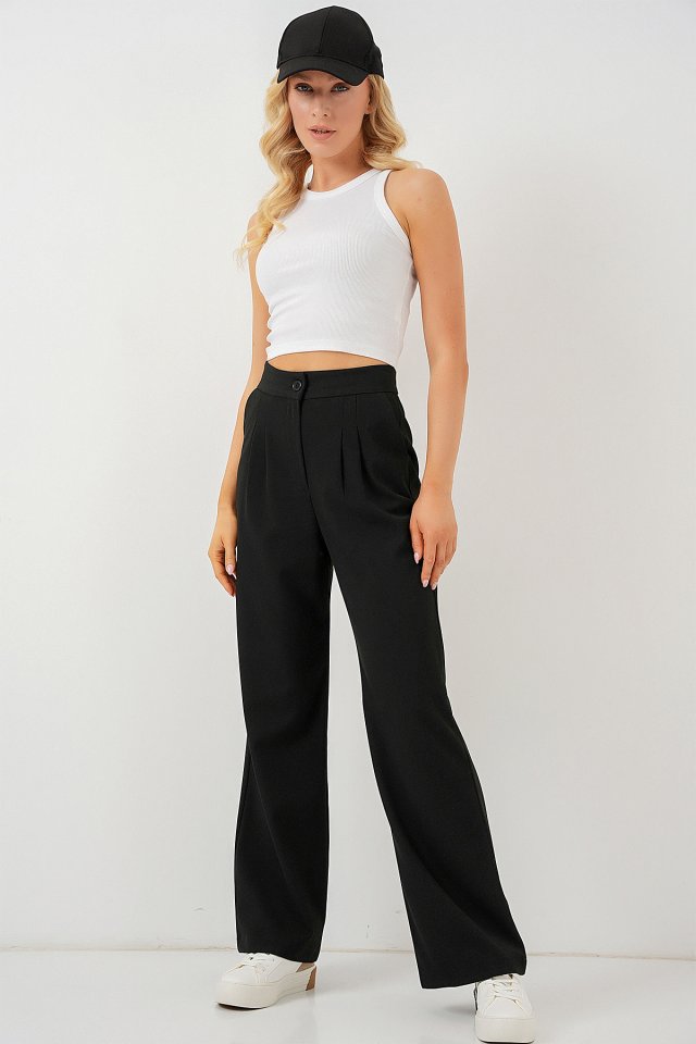 6638 Yüksek Bel Palazzo Pantolon – D. Siyah