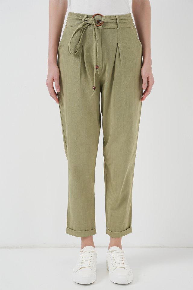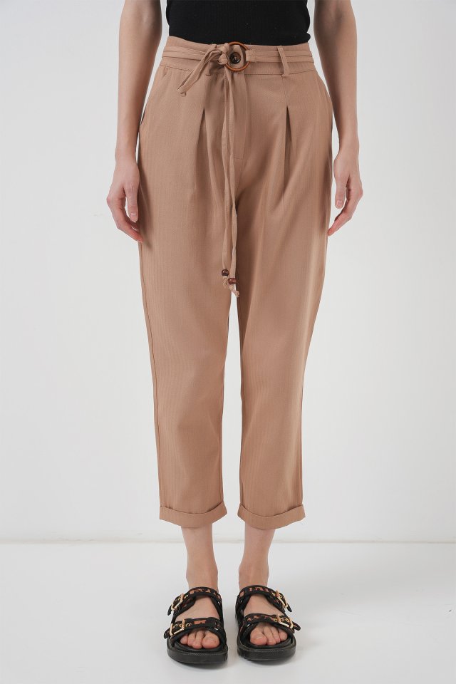 6660 Kemerli Keten Pantolon – Bisküvi
