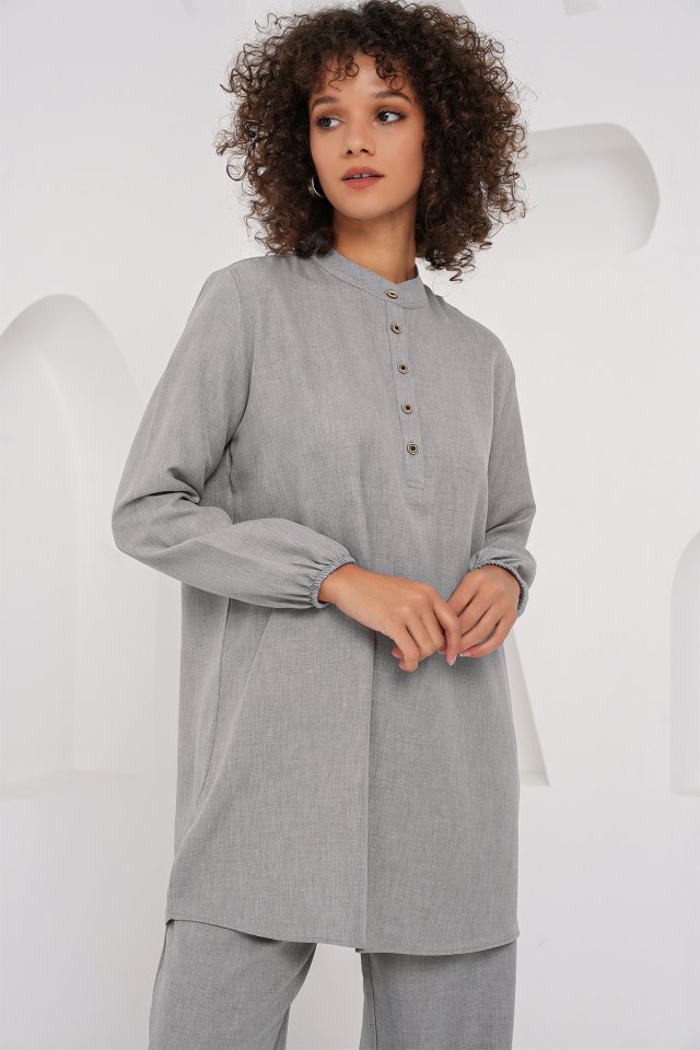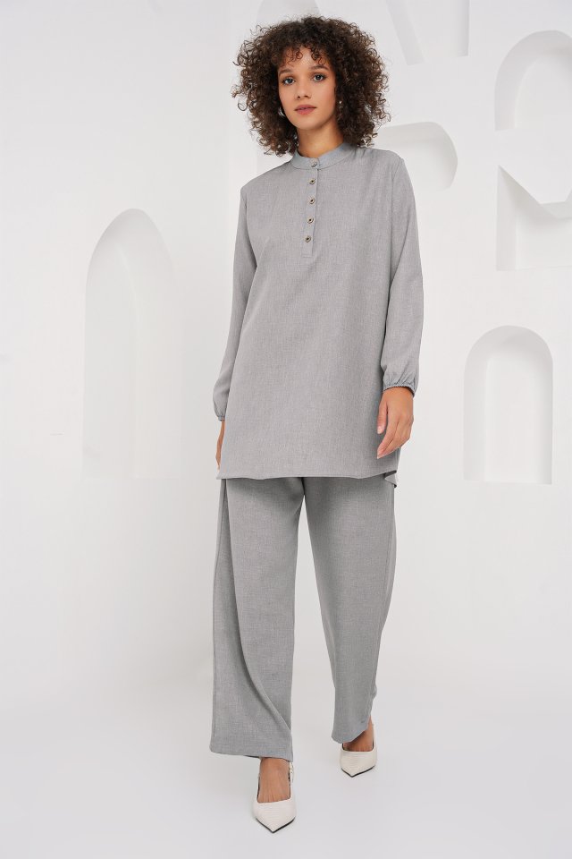 6678 Keten Tunik Pantolon İkili Takım – Gri