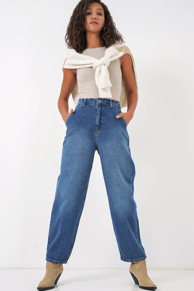 6688 Yüksek Bel Baggy Kot Pantolon – Lacivert