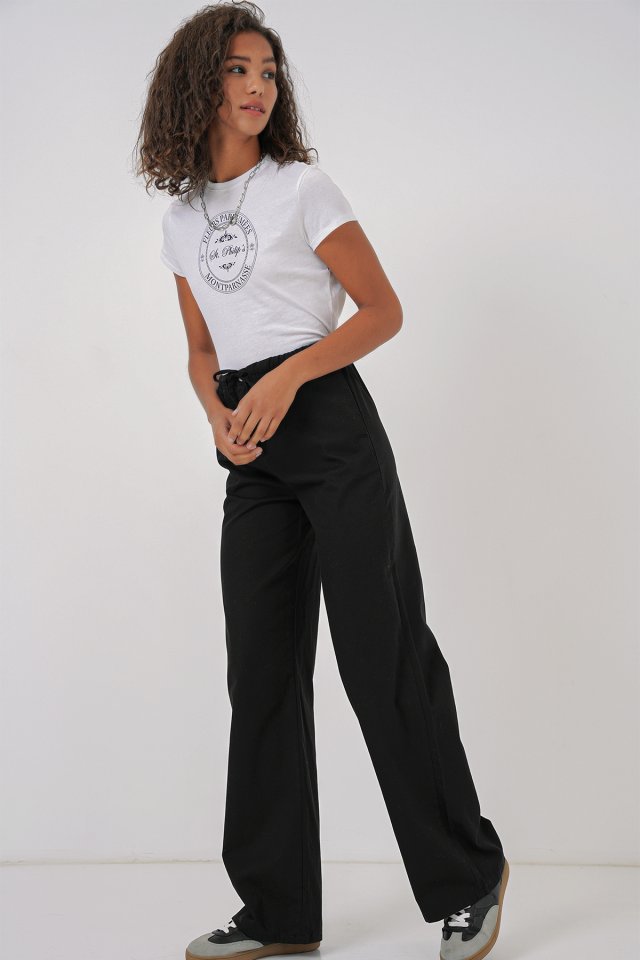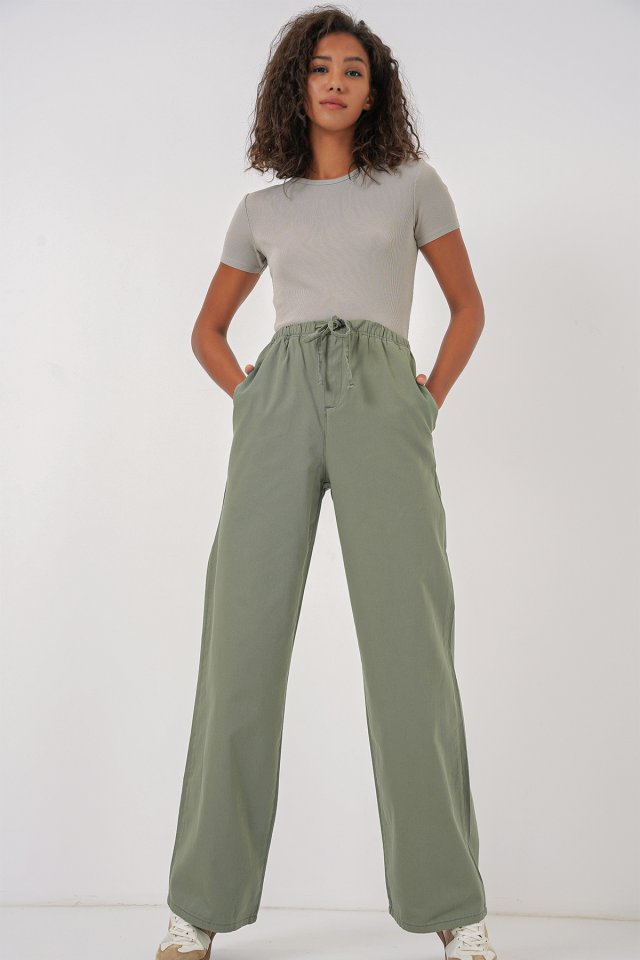 6690 Bol Paça Yüksek Bel Pantolon – Çağla