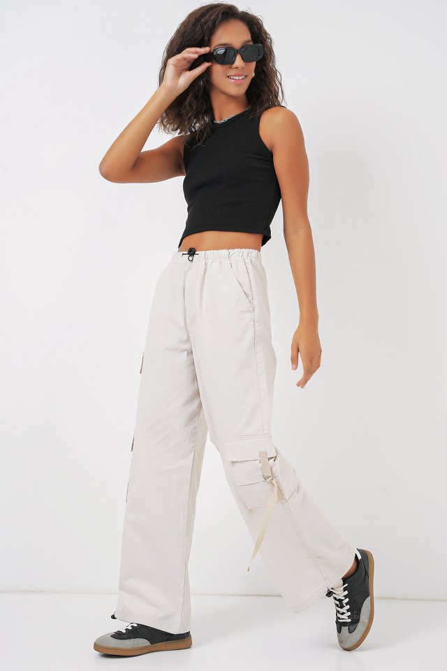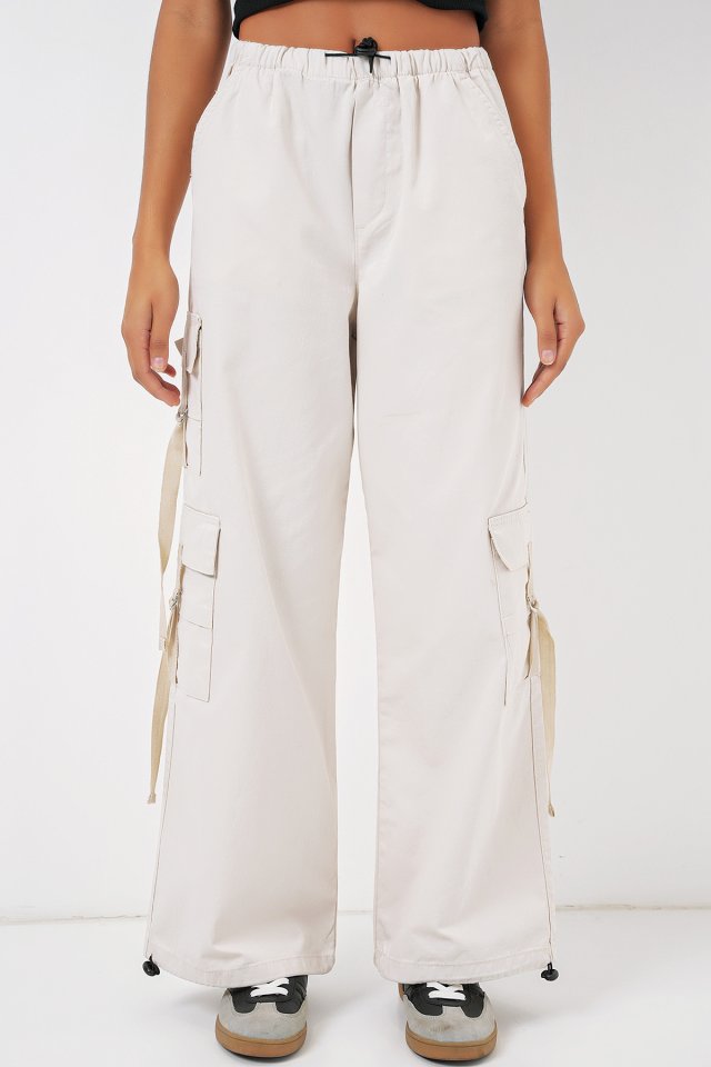 6691 Geniş Paça Kargo Pantolon – Ekru