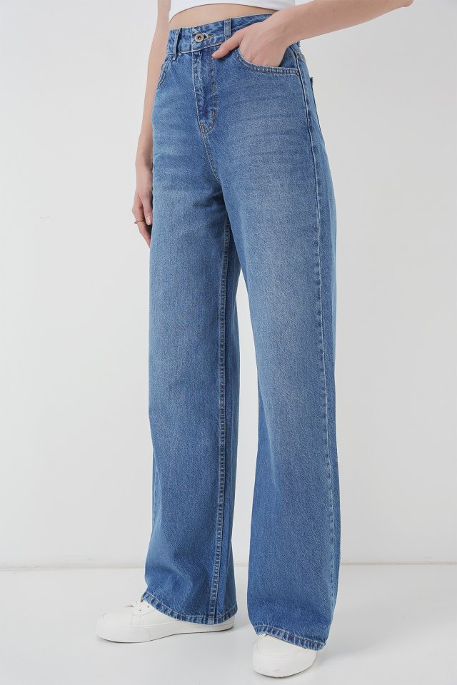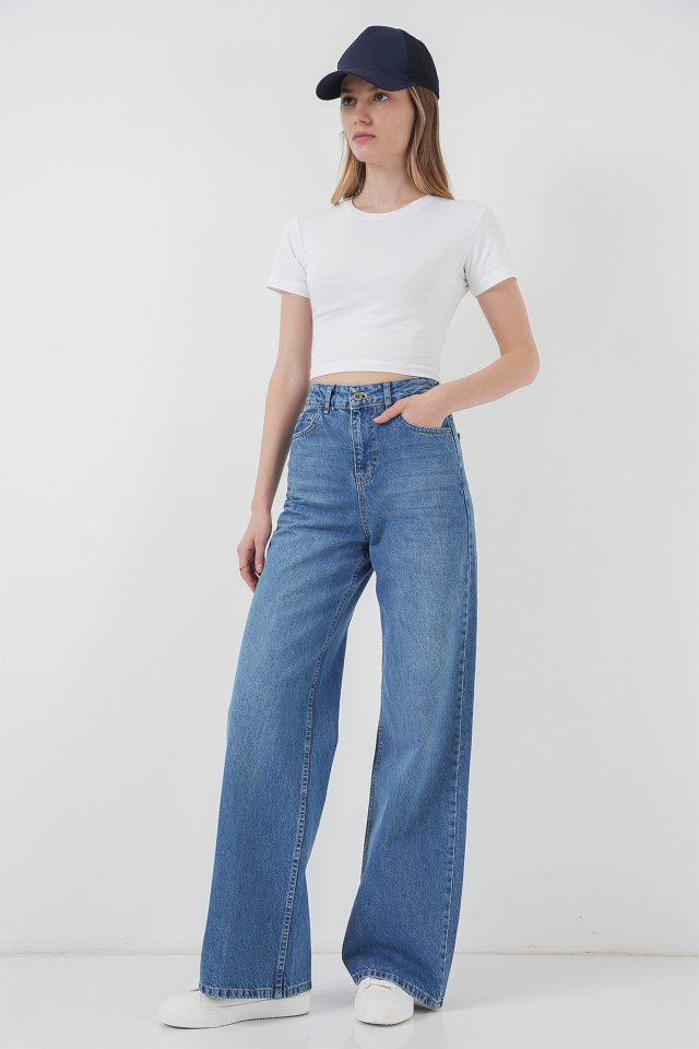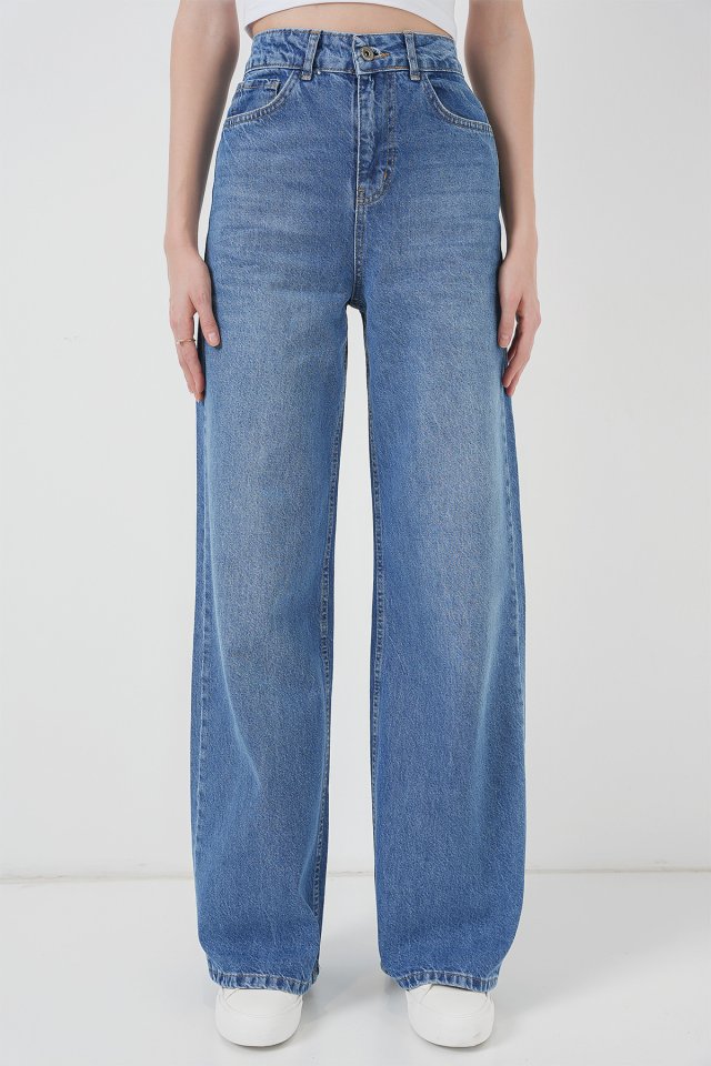 6702 Bol Paça Yüksek Bel Palazzo Kot Pantolon – Lacivert
