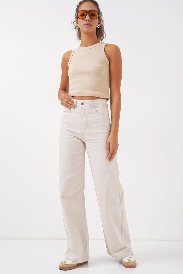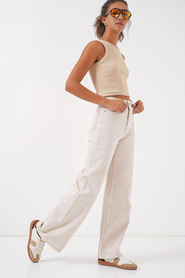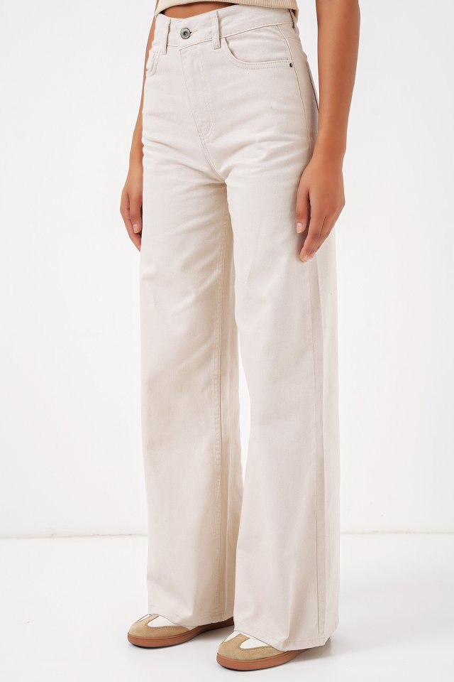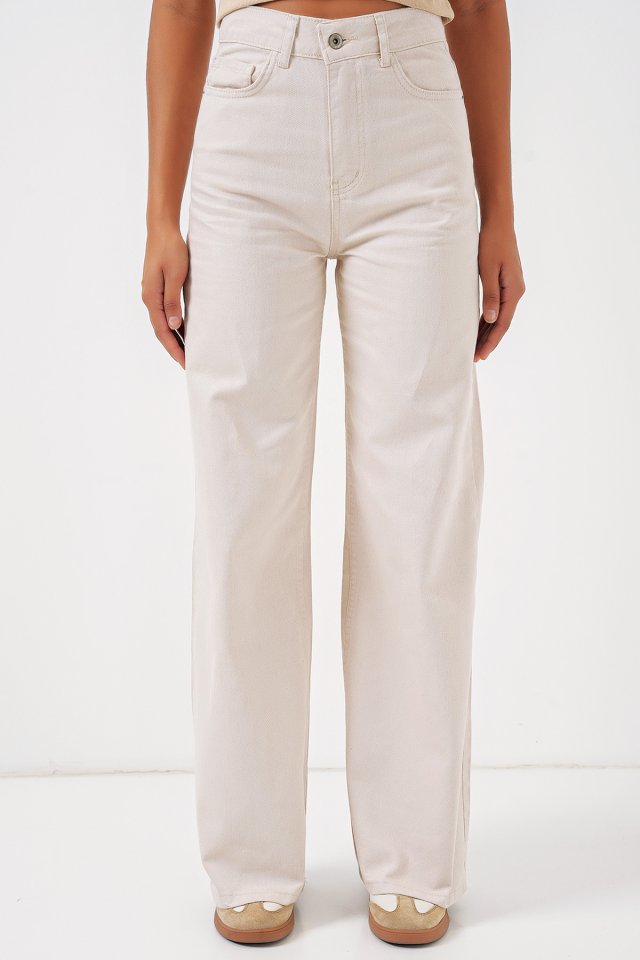 6704 Geniş Paça Yüksek Bel Kot Pantolon – Ekru
