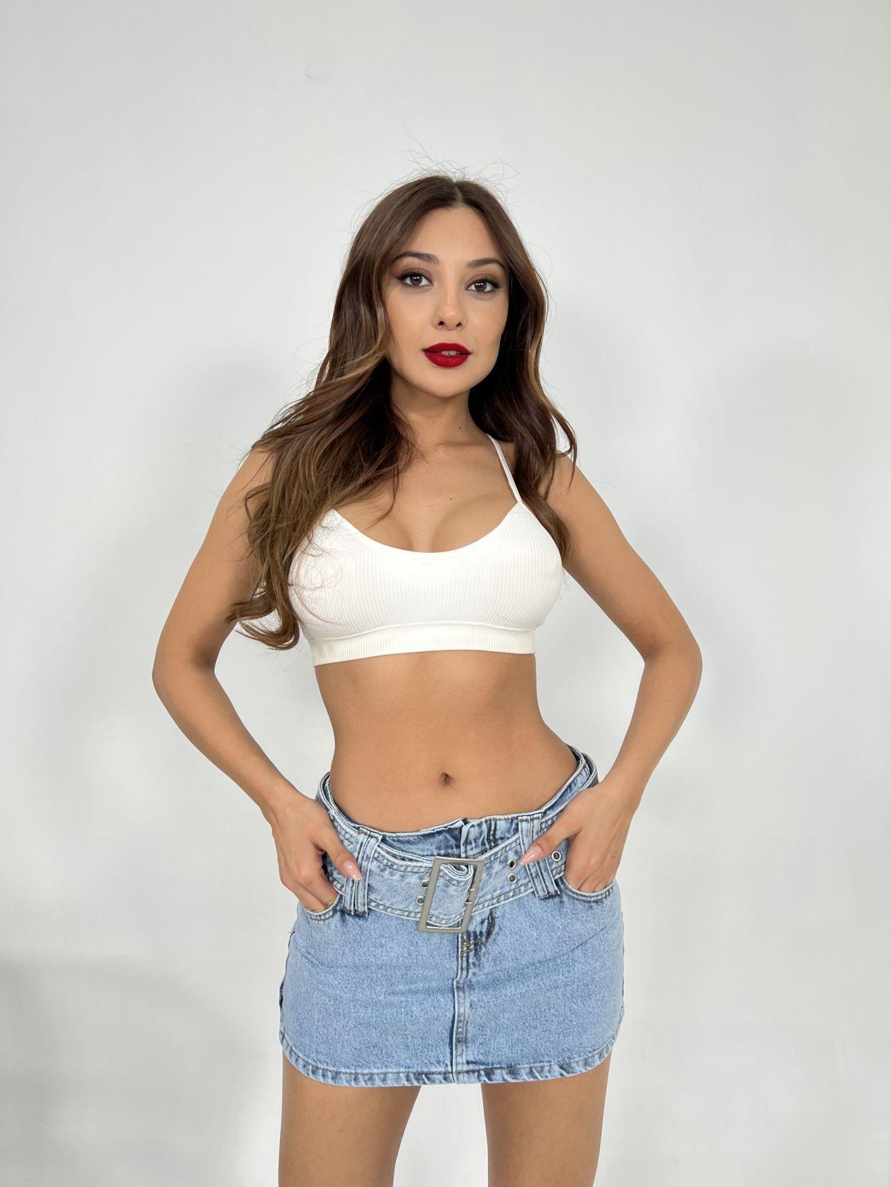 6831 BELT DENIM MINI SKIRT LOW WAIST-MAVİ