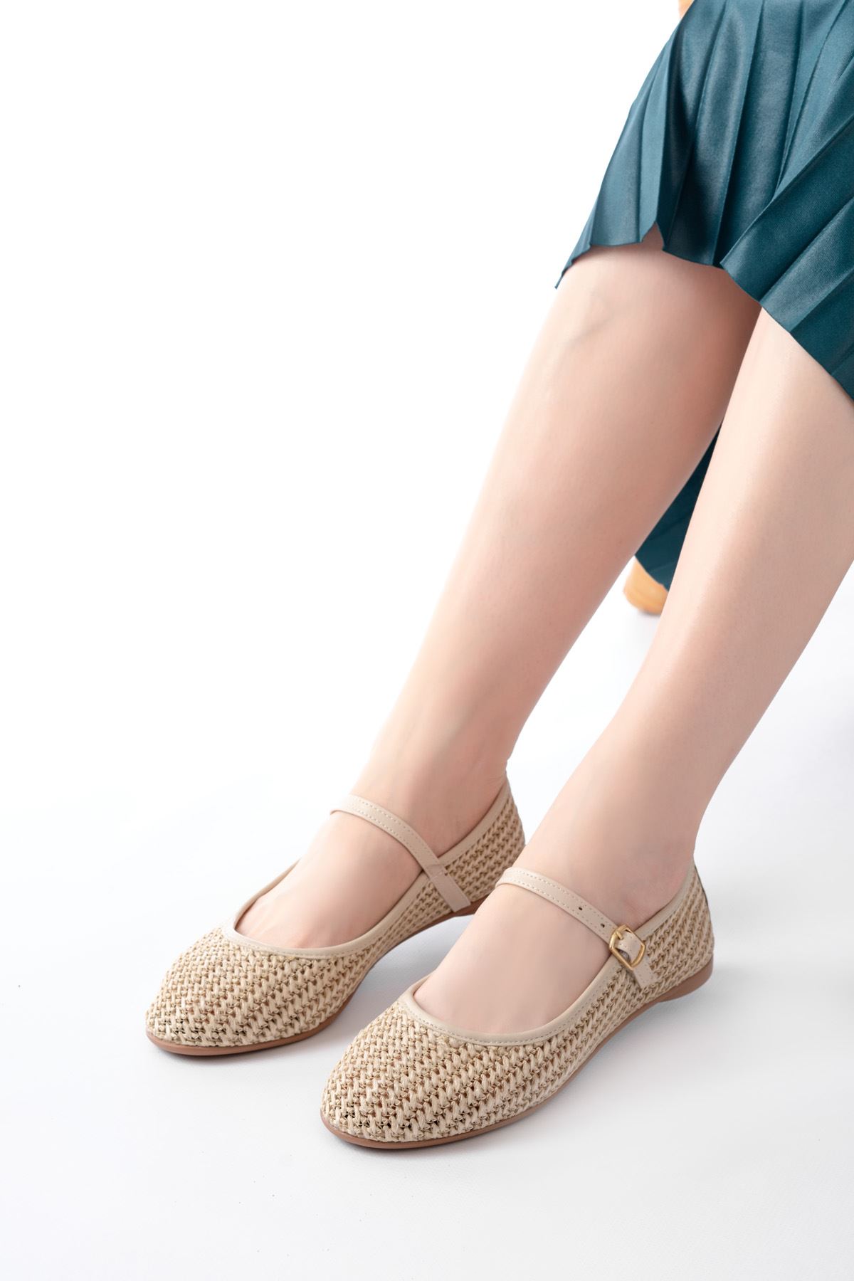 7432 Bej Fileli Toka Detaylı Günlük Kadın Babet