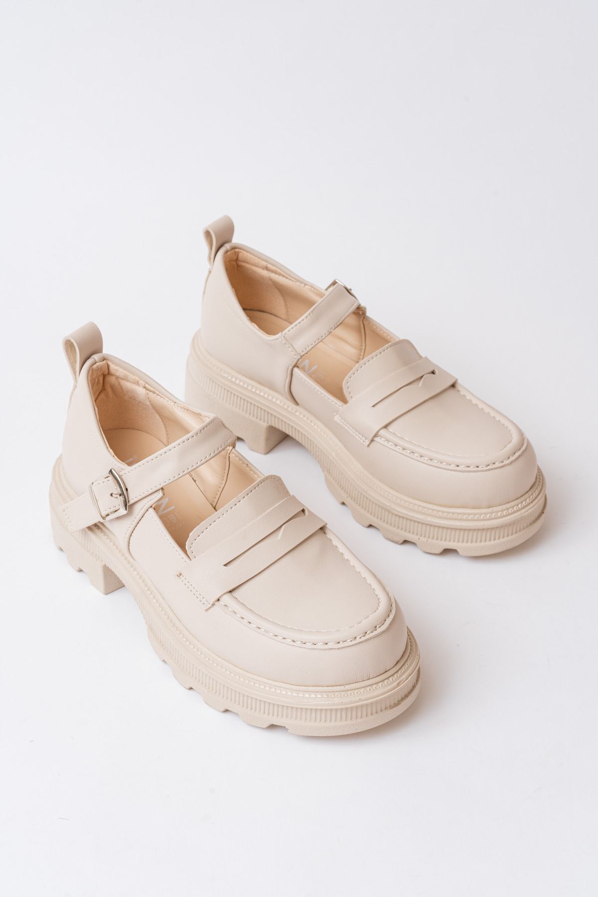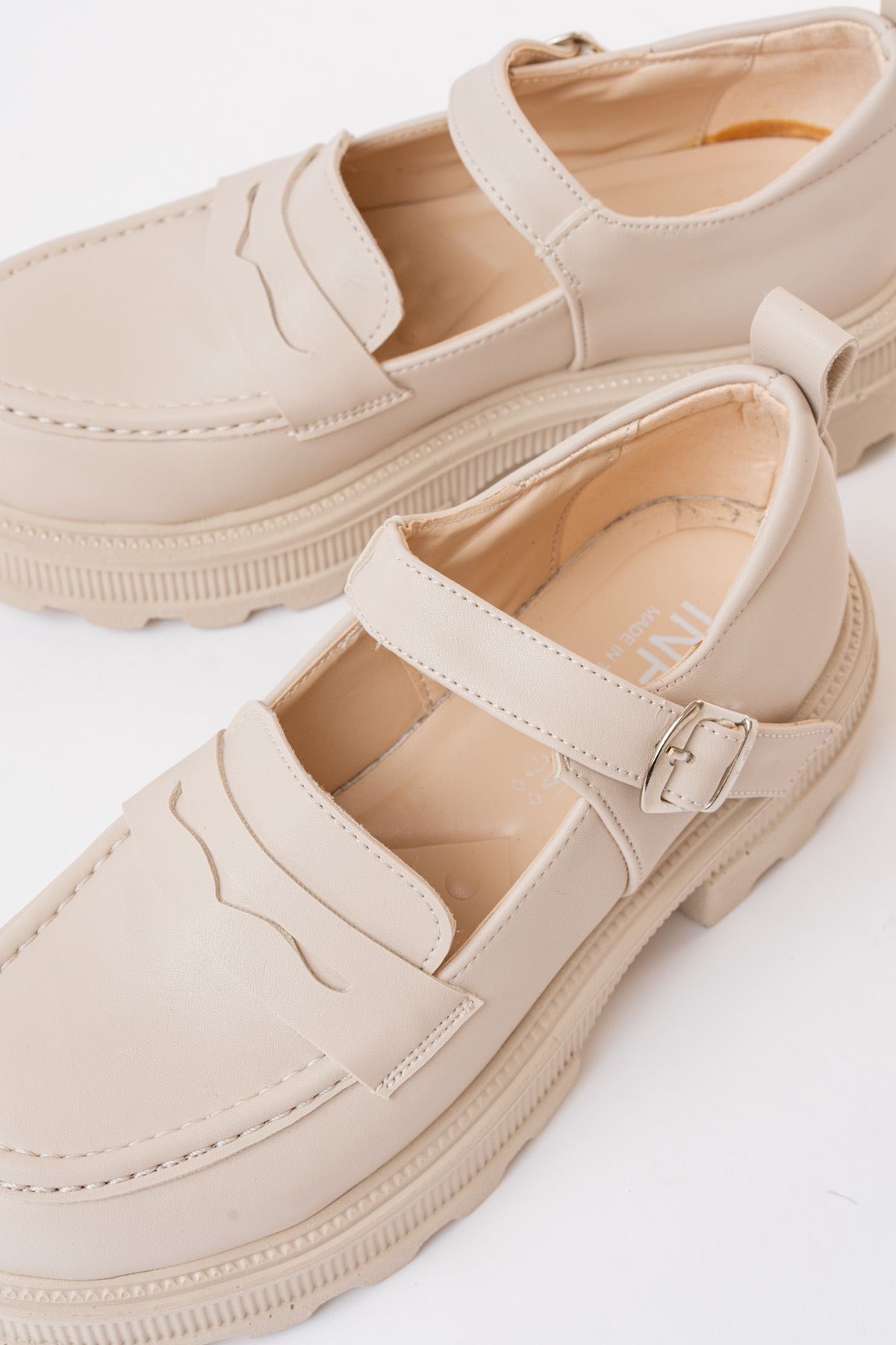 745-771 Bej Kadın Günlük Yüksek Tabanlı Loafer Ayakkabı