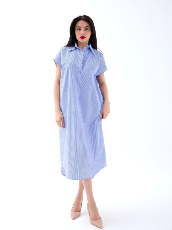 7450 ELBİSE-MAVİ BEYAZ ÇİZGİLİ