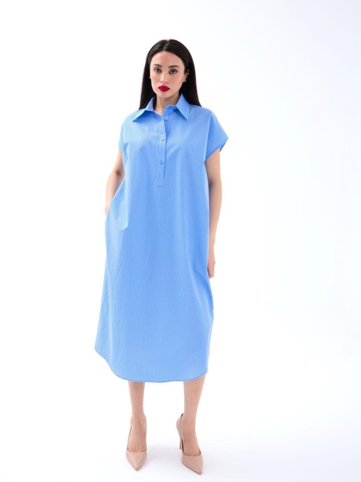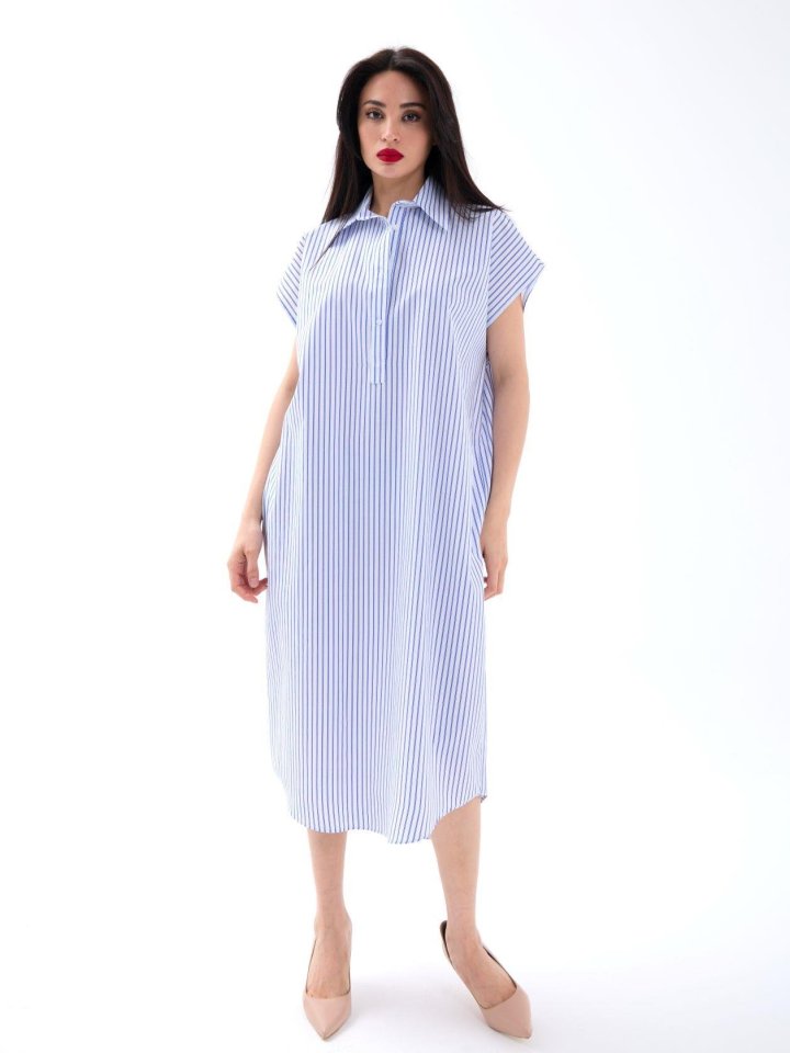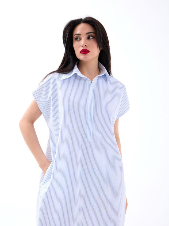 7450 ELBİSE-MAVİ BEYAZ ÇİZGİLİ