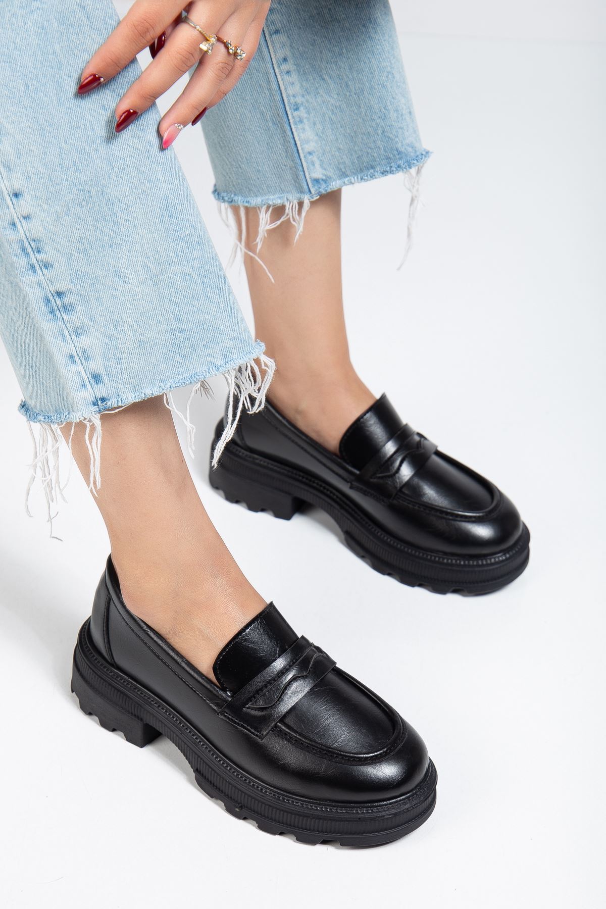 746-759 Siyah Yanki Yüksek Tabanlı Loafer Ayakkabı