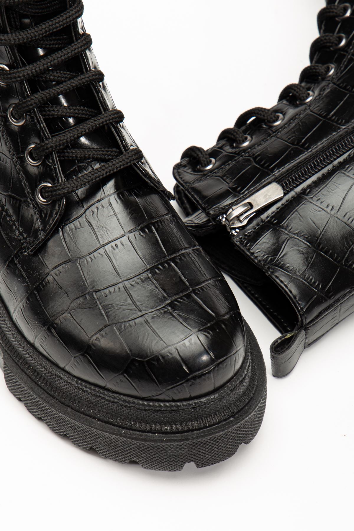 812-356 Siyah Kroko Bağcıklı Fermuarlı Günlük Kadın Bot
