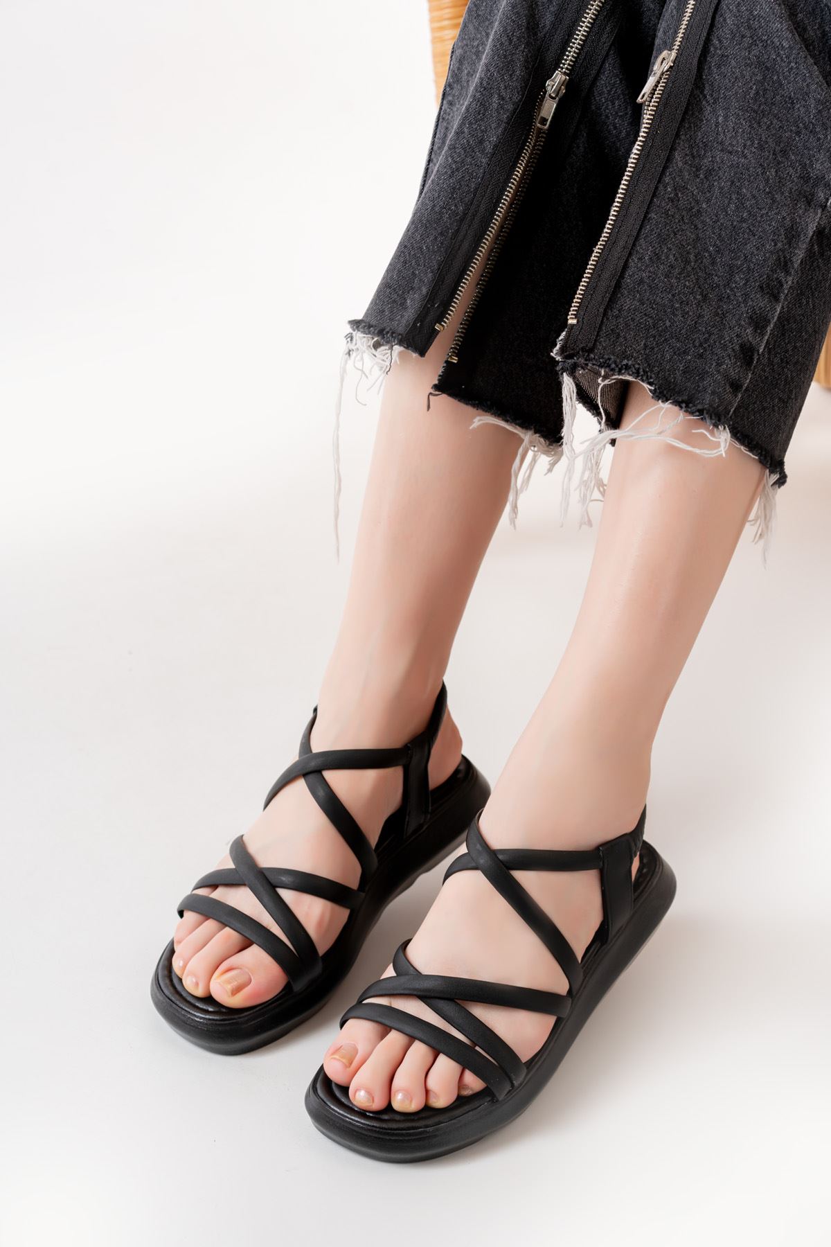 841-841 Siyah Lastikli Günlük Kadın Sandalet