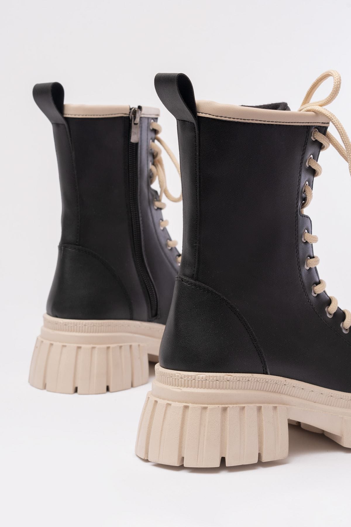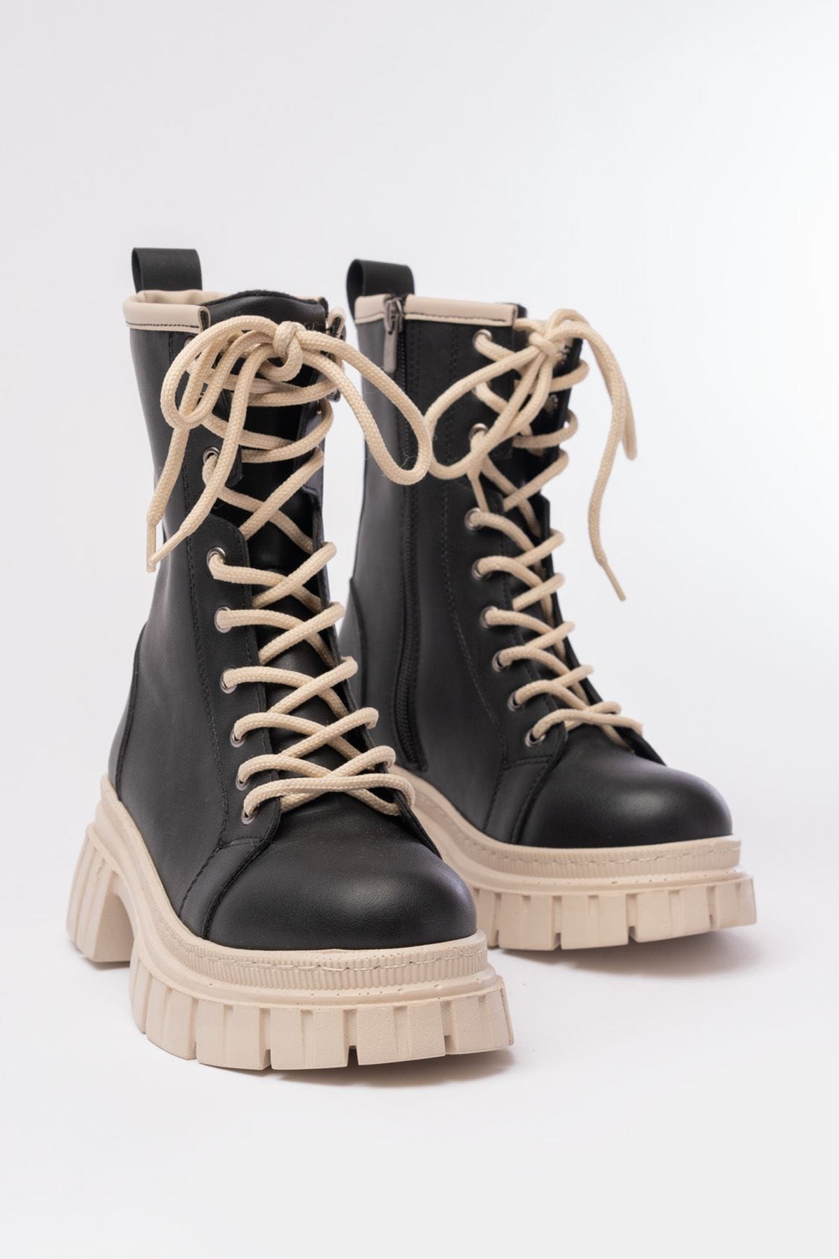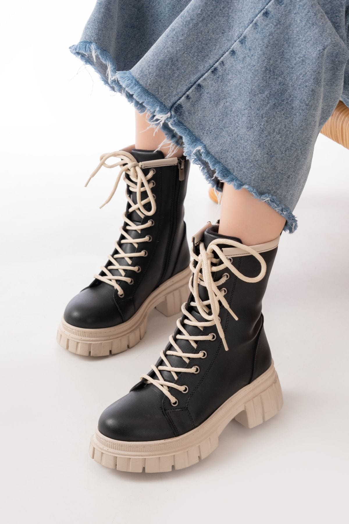 842-2961 Siyah Bağcıklı Kalın Tabanlı Fermuarlı Günlük Kadın Bot