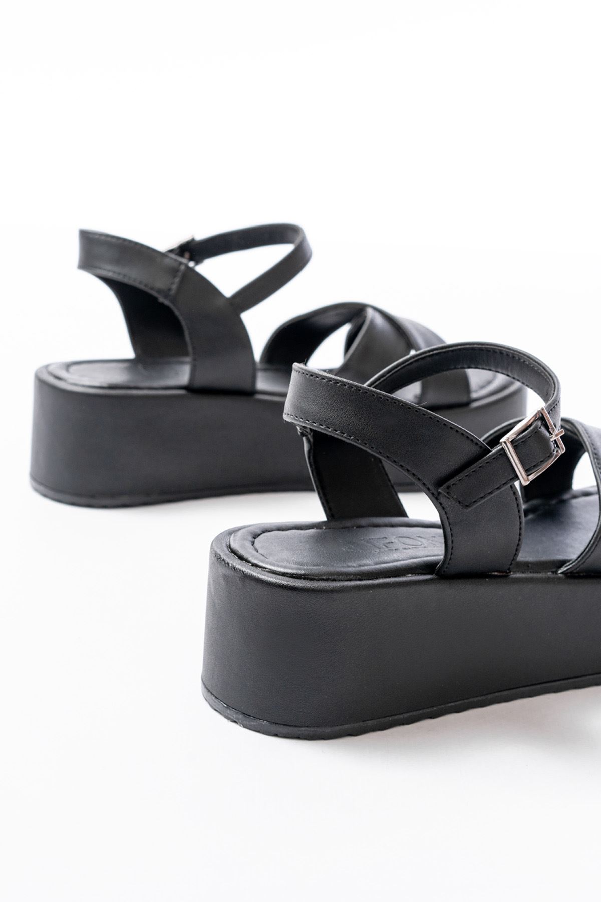 861-1005 Siyah Günlük Çapraz Dolgu Topuk Kadın Sandalet
