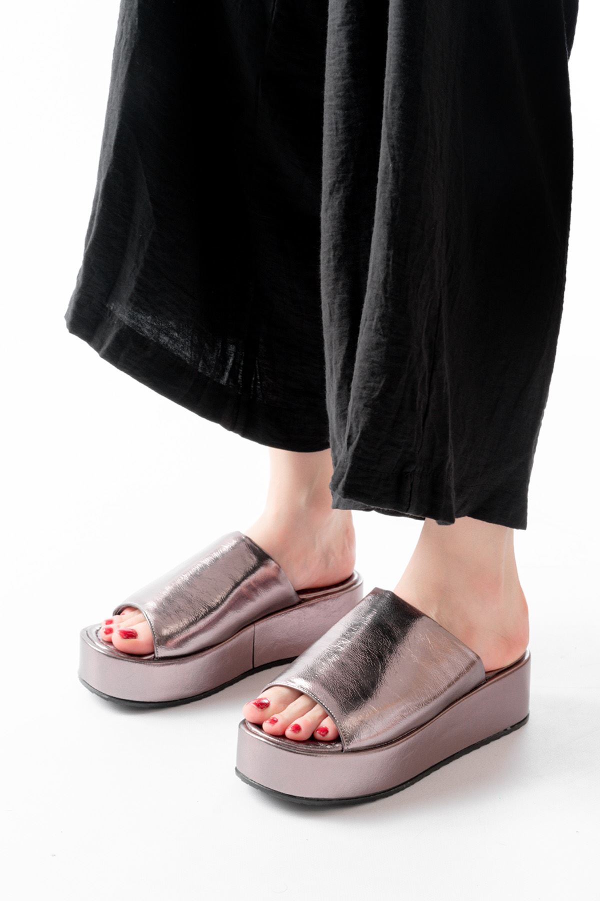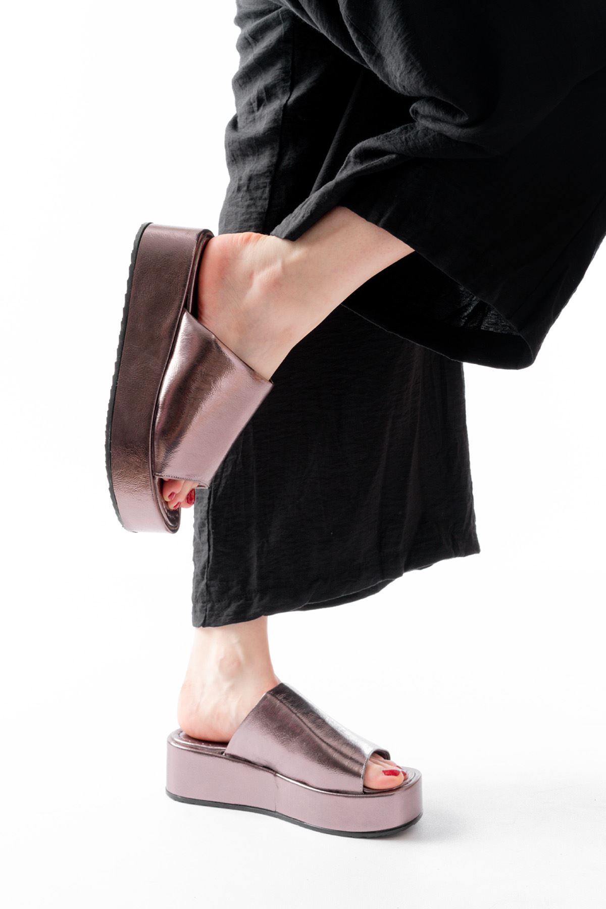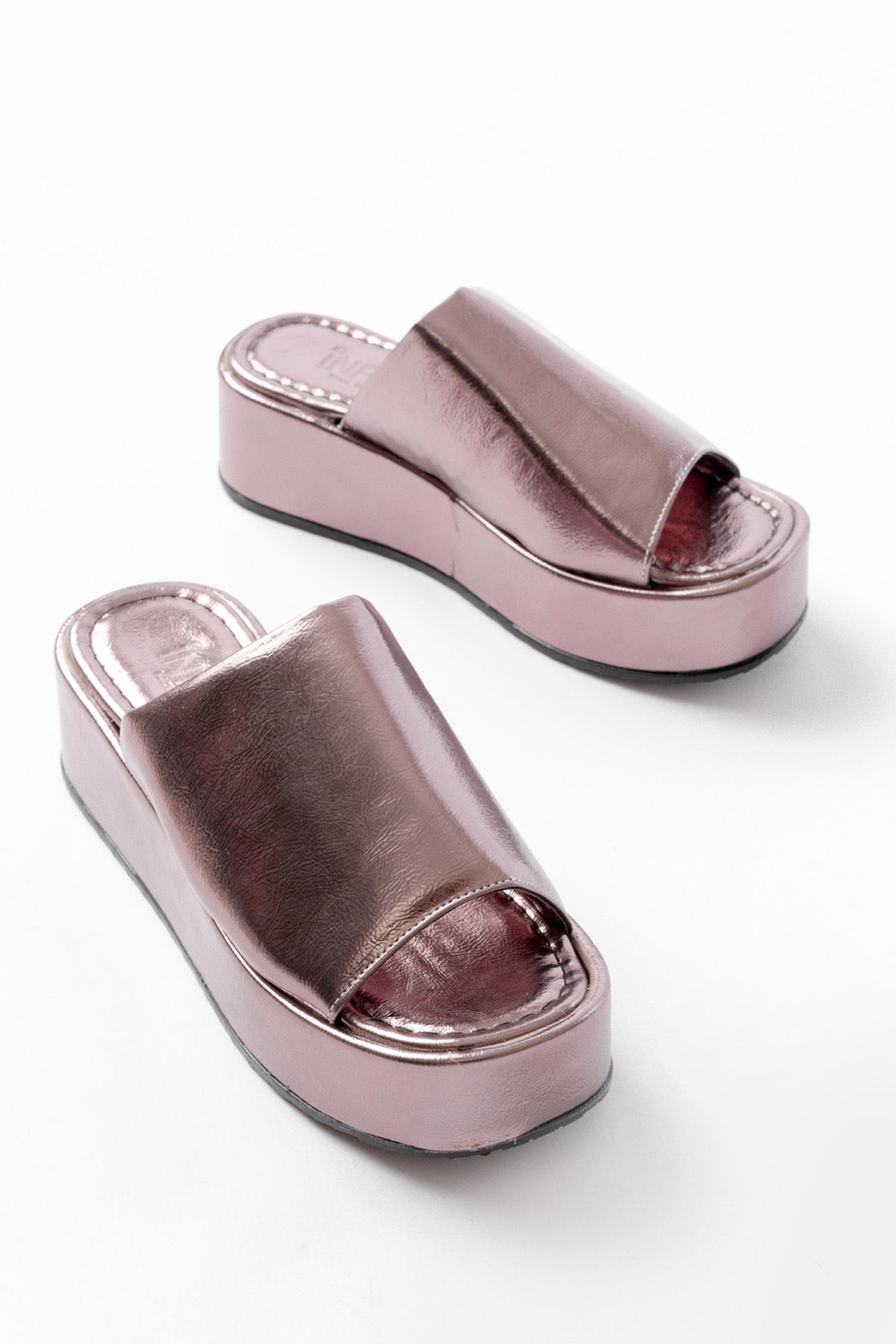 861-1011 Rose Cam Kırığı Geniş Bantlı Dolgu Kadın Terlik
