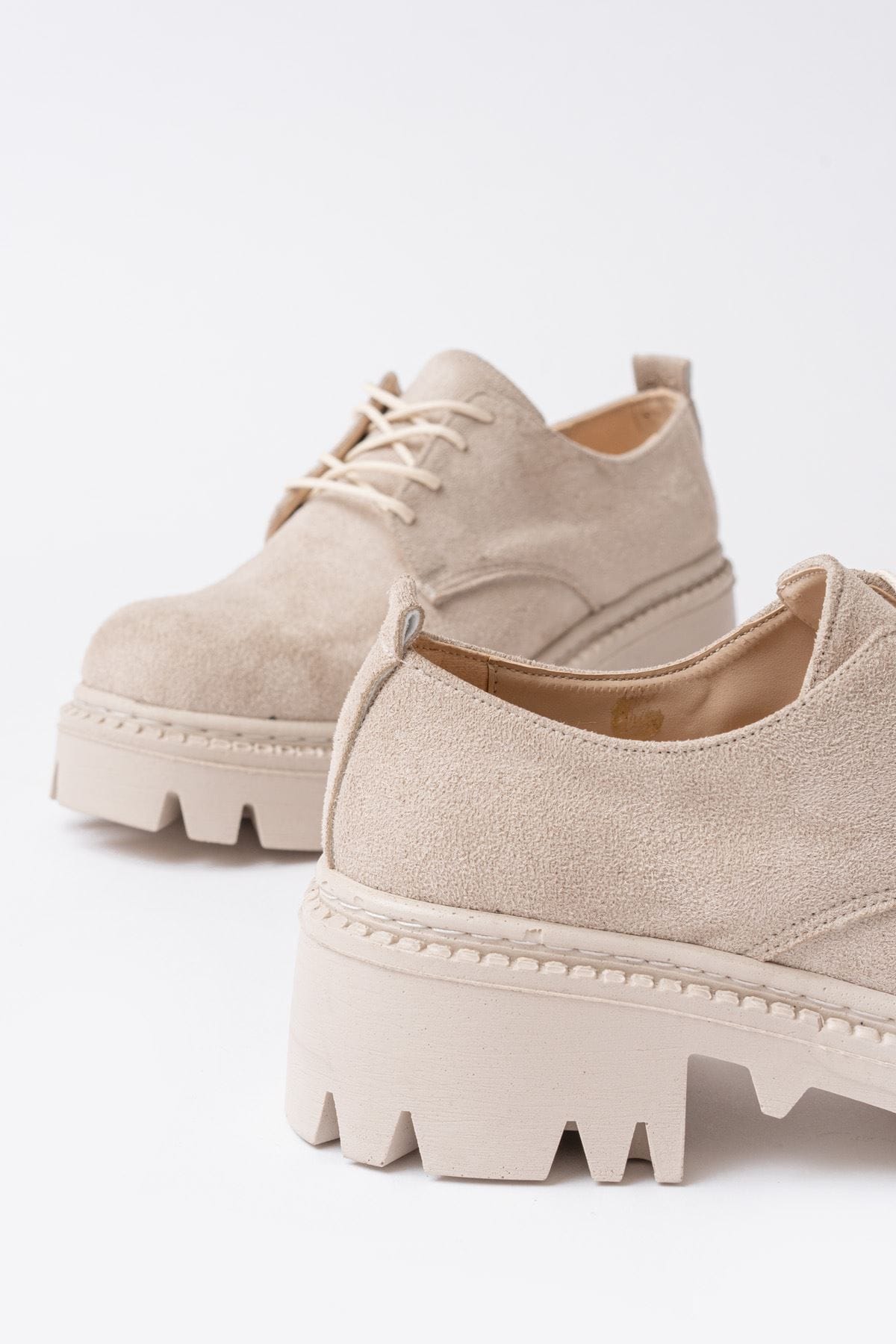 868-754 Bej Süet Bağcıklı Günlük Yüksek Tabanlı Loafer Ayakkabı