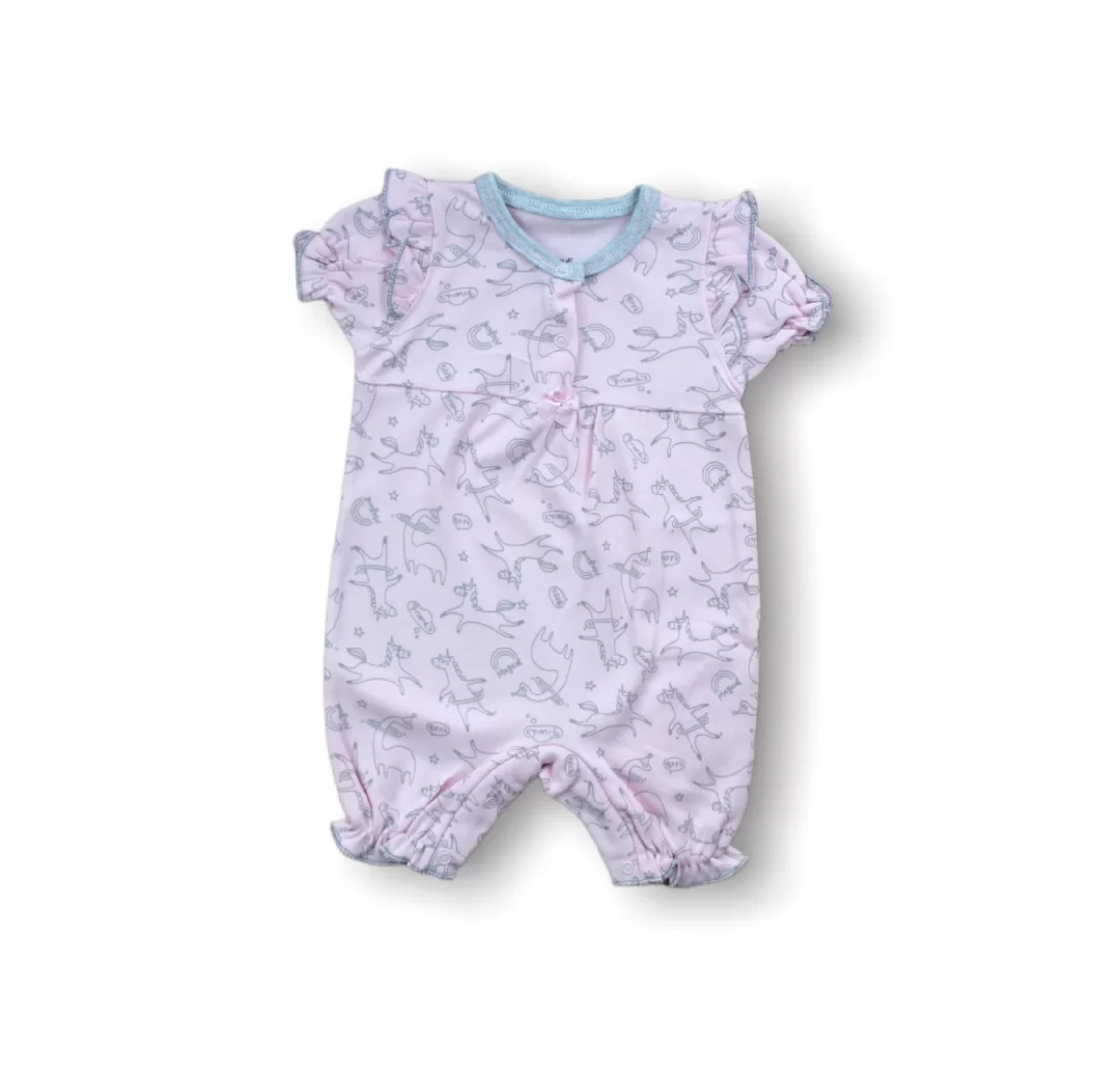 9-12 12-18 18-24 Ay Cemre Uçan Balon Baskılı Kısa Kollu Kız Bebek Tulumu Pembe adet