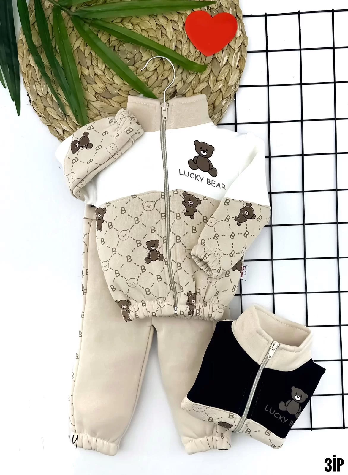 / 9-12-18-24 Ay Ayıcık Desenli Uzun Kollu 2li Erkek Bebek Takımı Bej