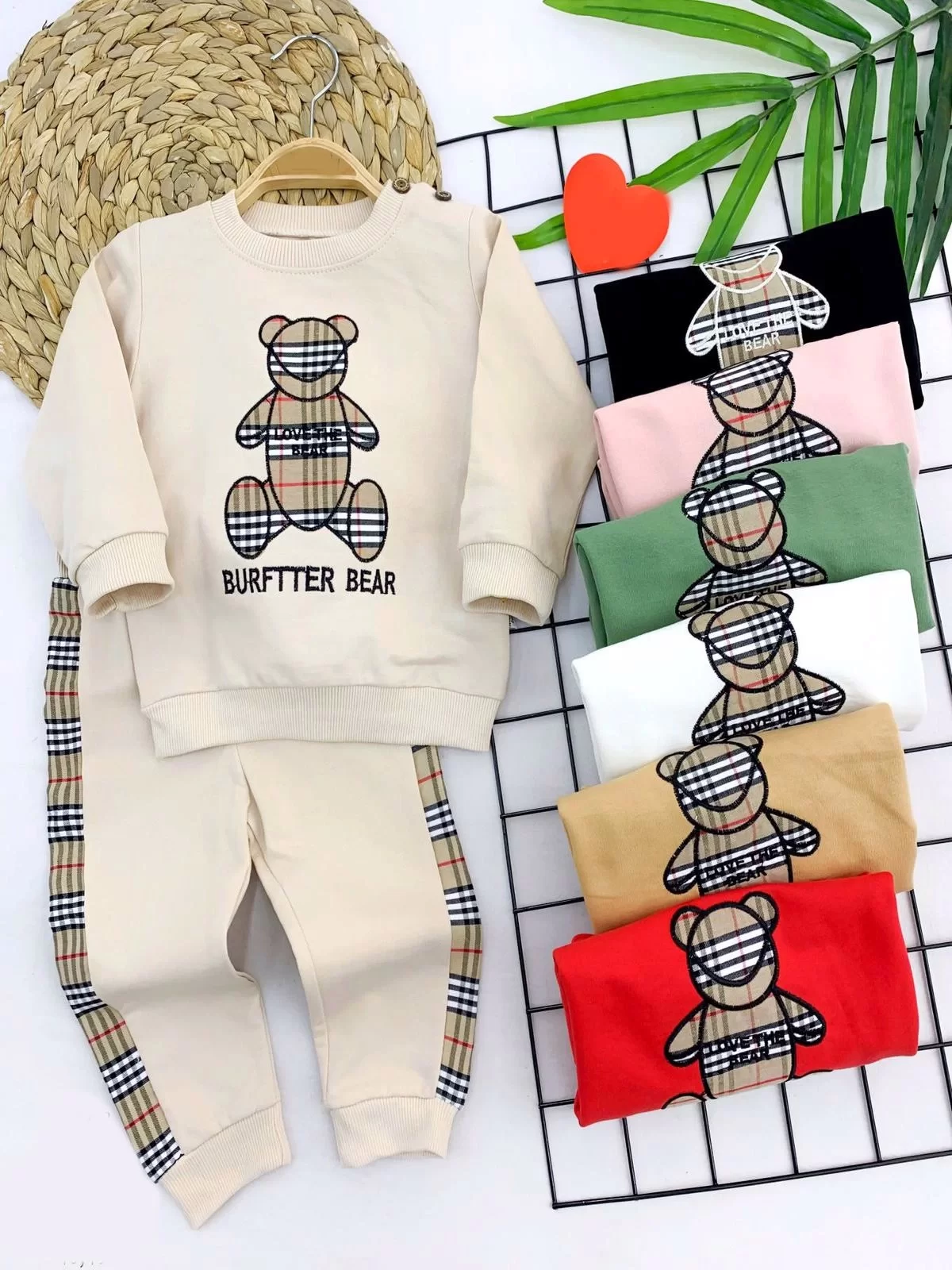 / 9-12-18-24 Ay Bear Nakışlı Kenar Şeritli 2li Erkek Bebek Takımı Siyah