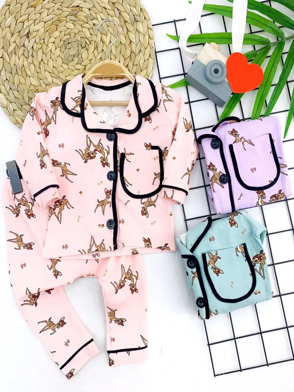 9-12-18-24 Ay Ceylan Baskılı Düğme Kapamalı 2li Kız Erkek Bebek Pijama Takımı Yeşil