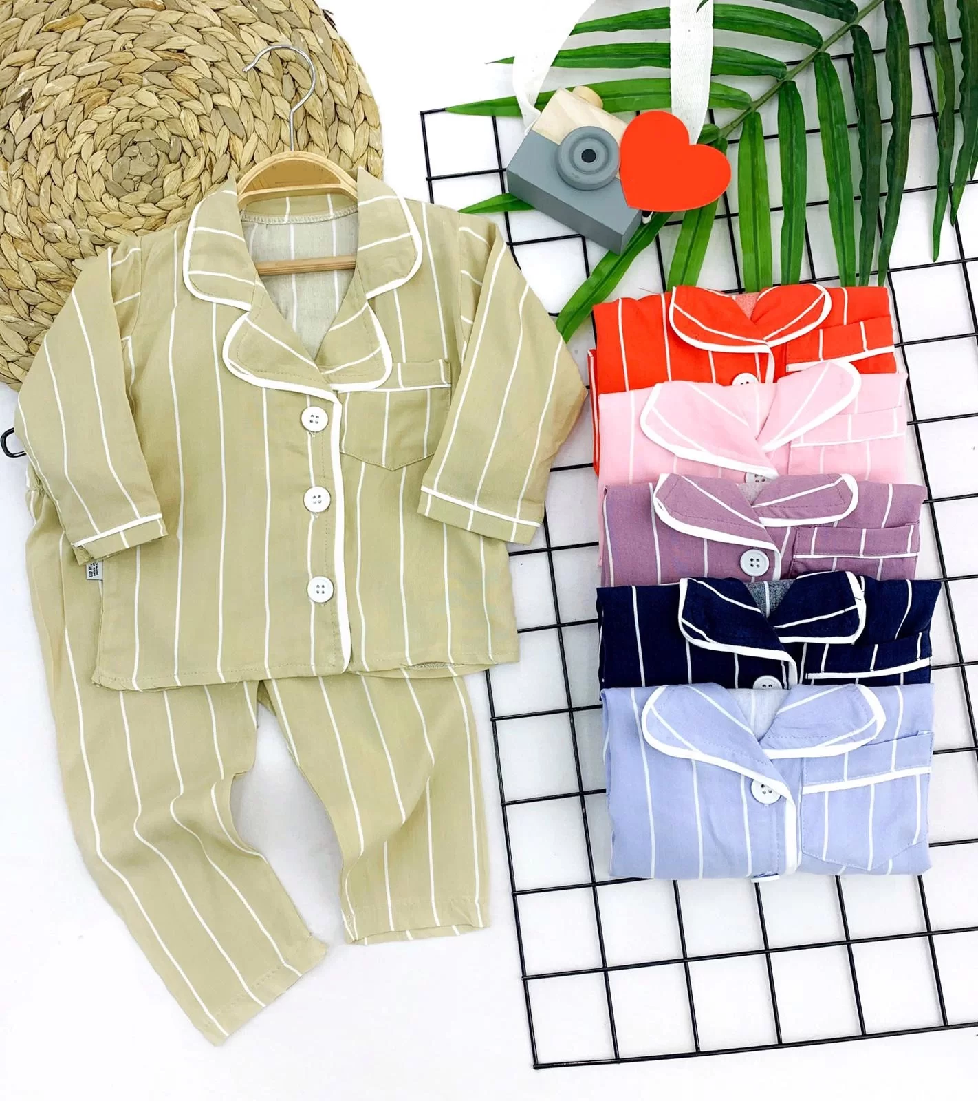 / 9-12-18-24 Ay Çizgili Düğme Kapamalı 2li Kız Erkek Bebek Pijama Takımı Pembe