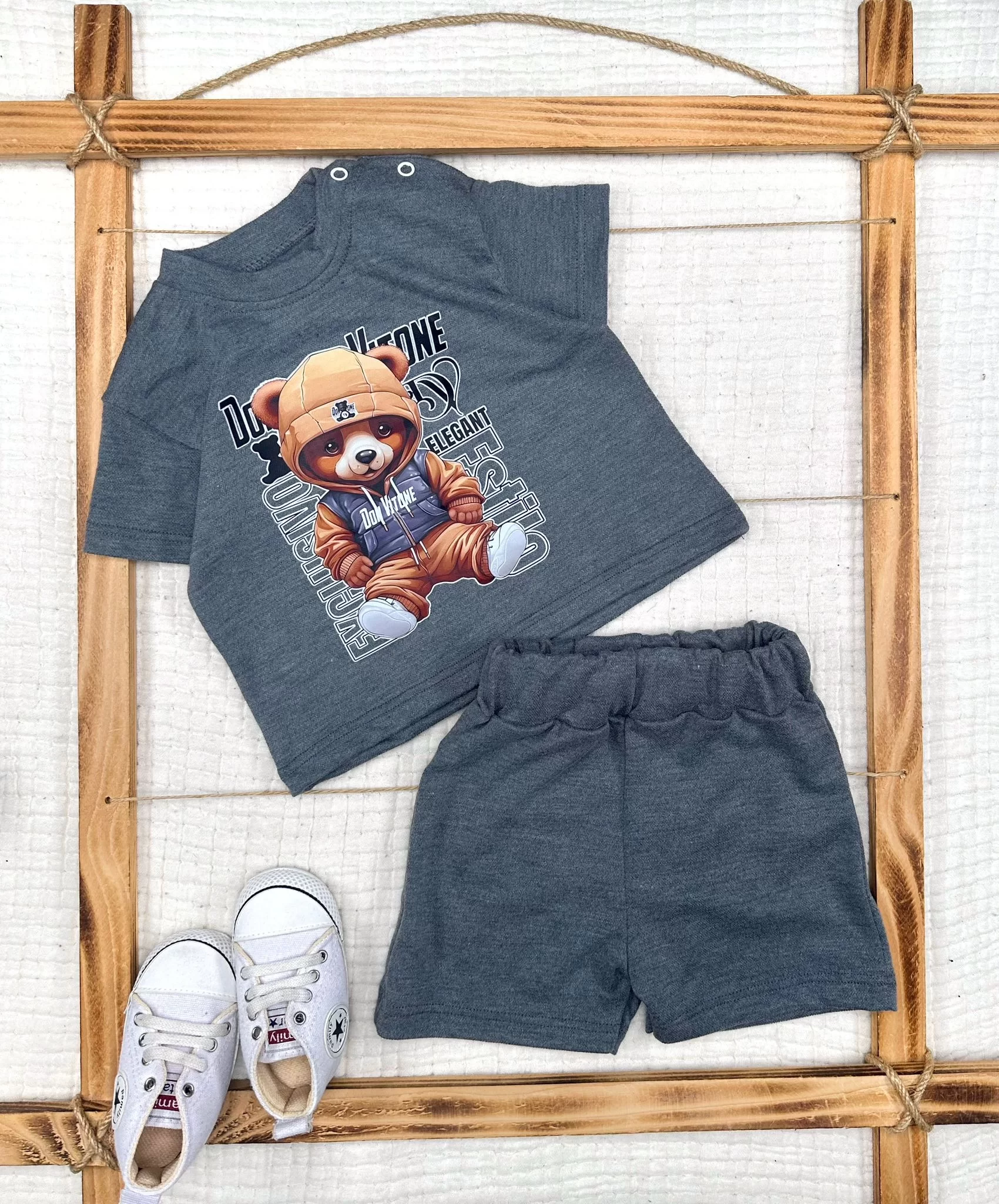9-12-18-24 Ay Dansçı Ayıcık Baskılı Şortlu Kısa Kollu Tişört 2li Erkek Bebek Takımı