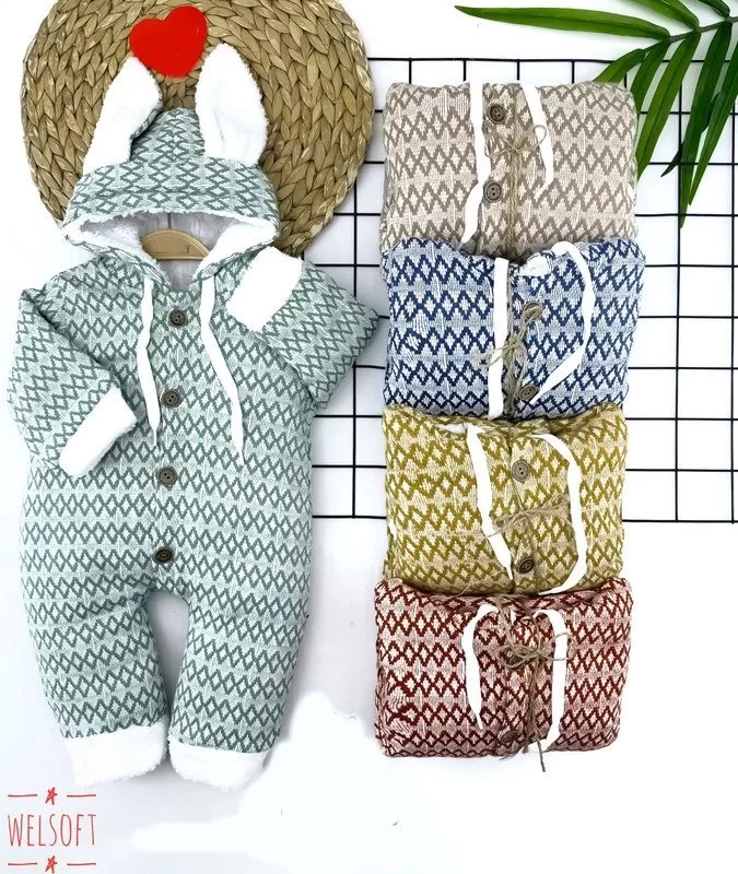 9-12-18-24 Ay Düğme Kapamalı Kulaklı Kapşonlu İp Bağlamalı Kız Erkek Bebek Tulumu Sarı