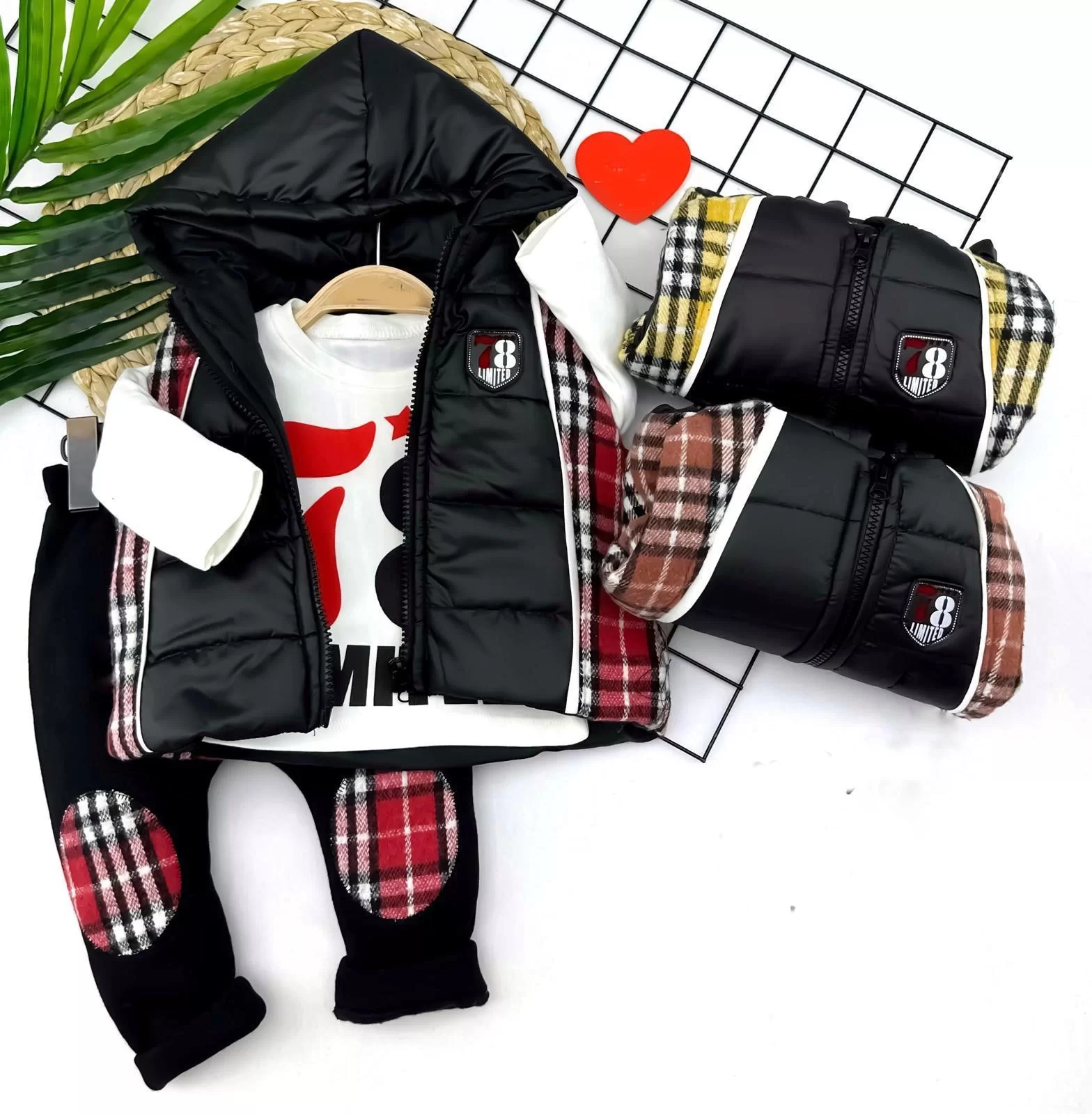 9-12-18-24 Ay Fermuar Kapamalı Kapşonlu Yelek Sweatli 3lü Erkek Bebek Takımı