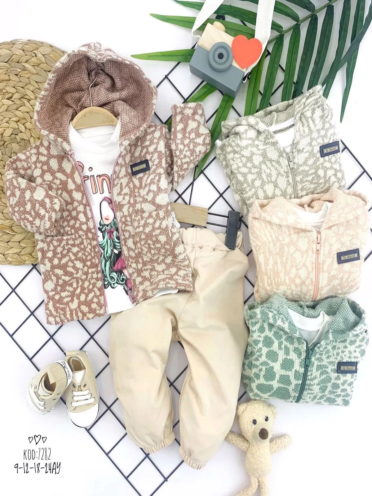 9-12-18-24 Ay Fermuarlı Kapşonlu Triko Ceket Uzun Kollu Sweatli 3lü Kız Erkek Bebek Takımı