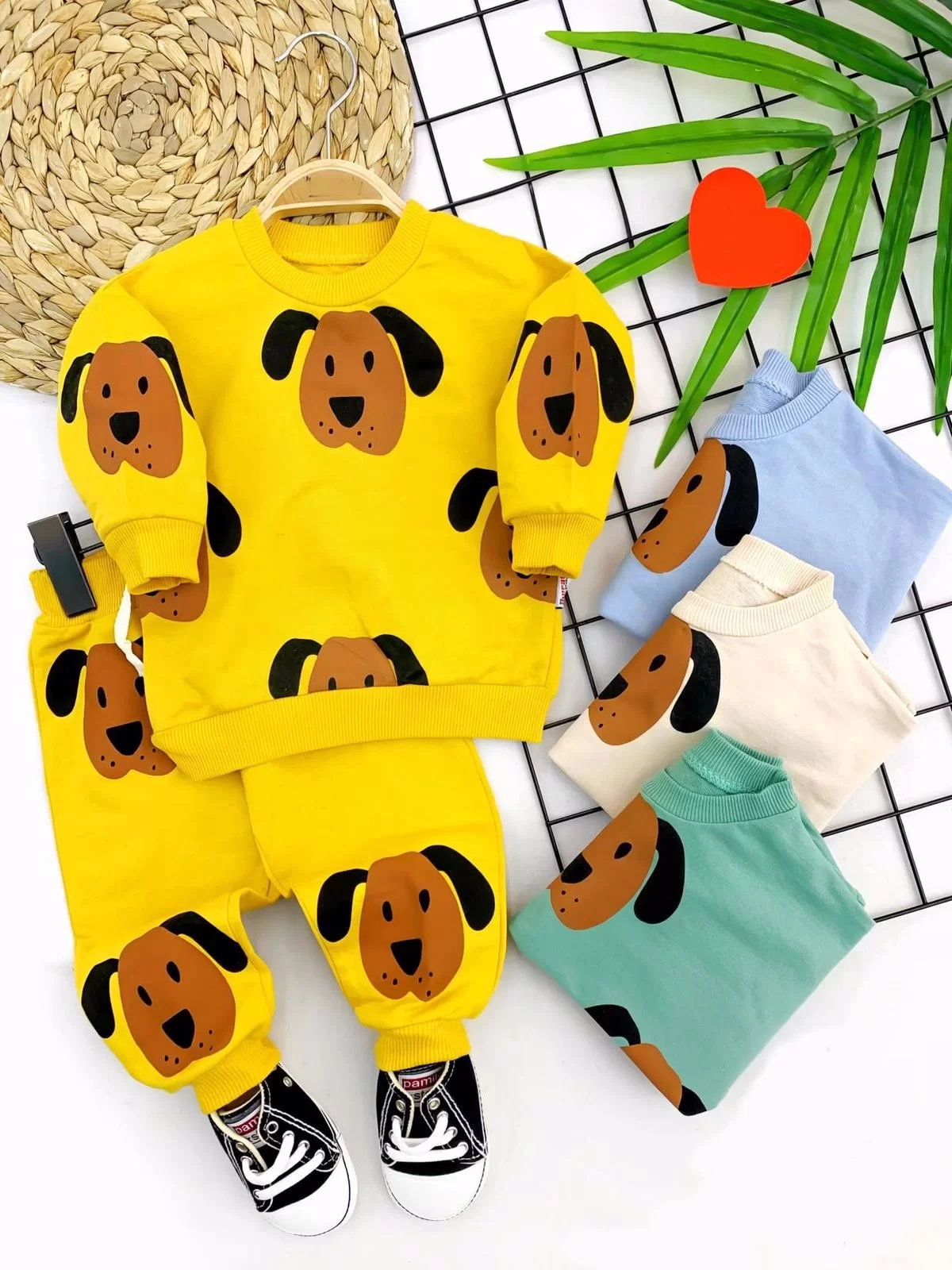 9-12-18-24 Ay Köpekcik Baskılı 2li Kız Erkek Bebek Takımı
