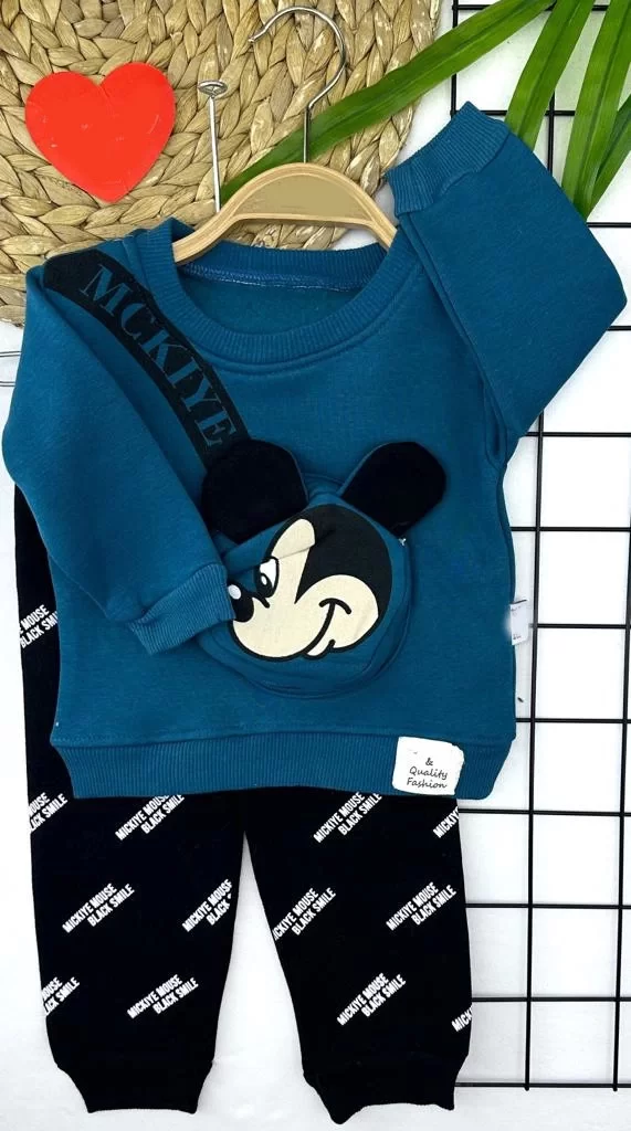 9-12-18-24 Ay Mickey Kendinden Ferumarlı Çanta Uzun Kollu Sweat 2li Kız Erkek Bebek Takımı