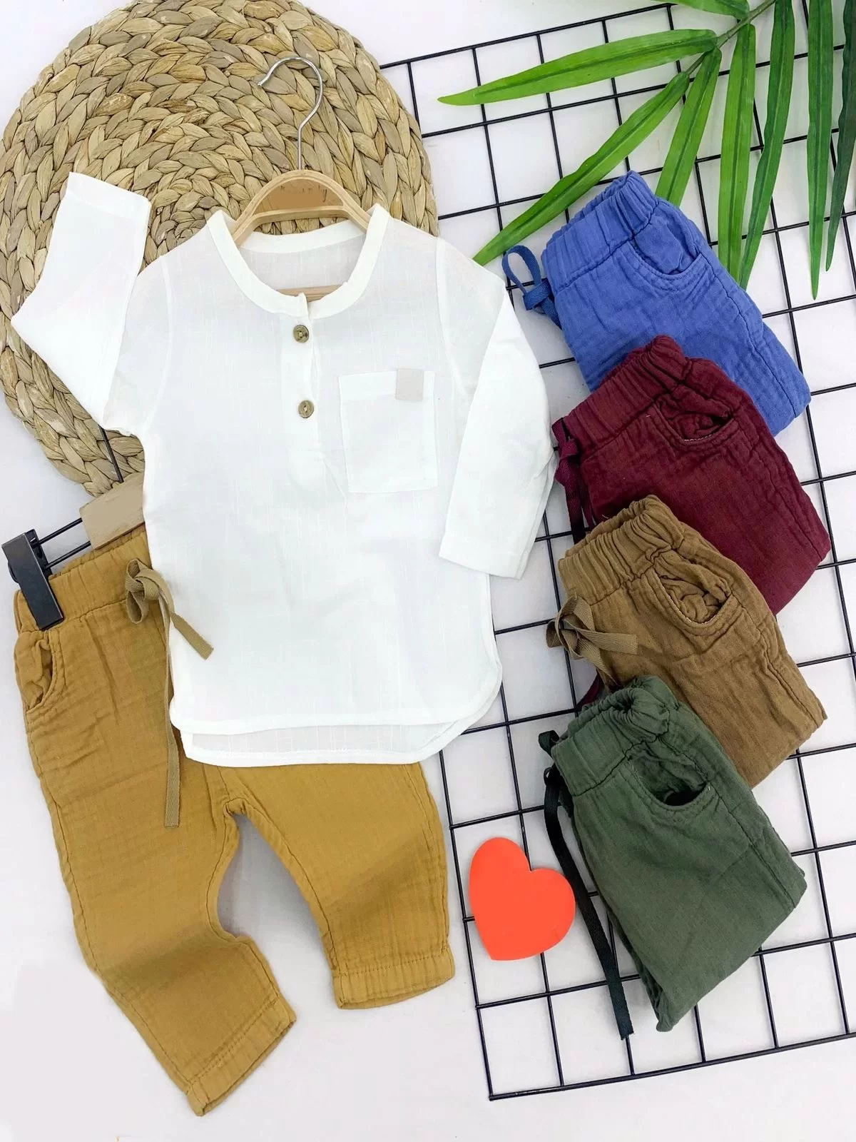 9-12-18-24 Ay Nefes Alan Organik Kumaş Hakim Yaka 2li Erkek Bebek Takımı