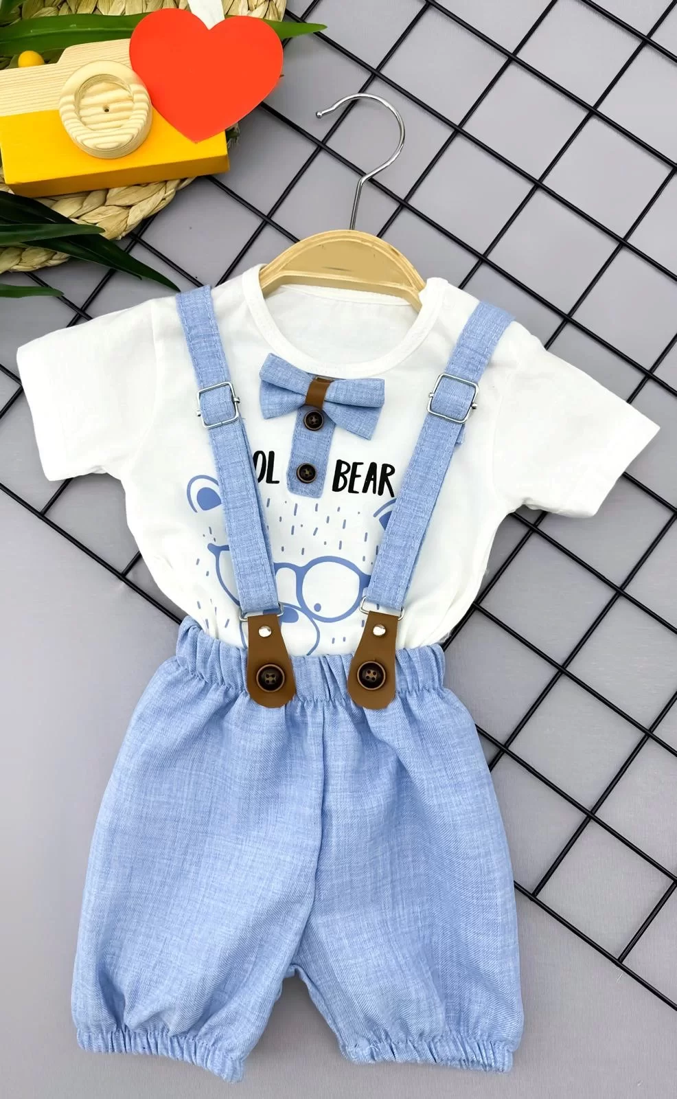 “9-12-18-24 Ay Papyon Detaylı Keten Şort Salopet Tişörtlü 2li Erkek Bebek Takımı” için yorum yapan ilk kişi siz olun