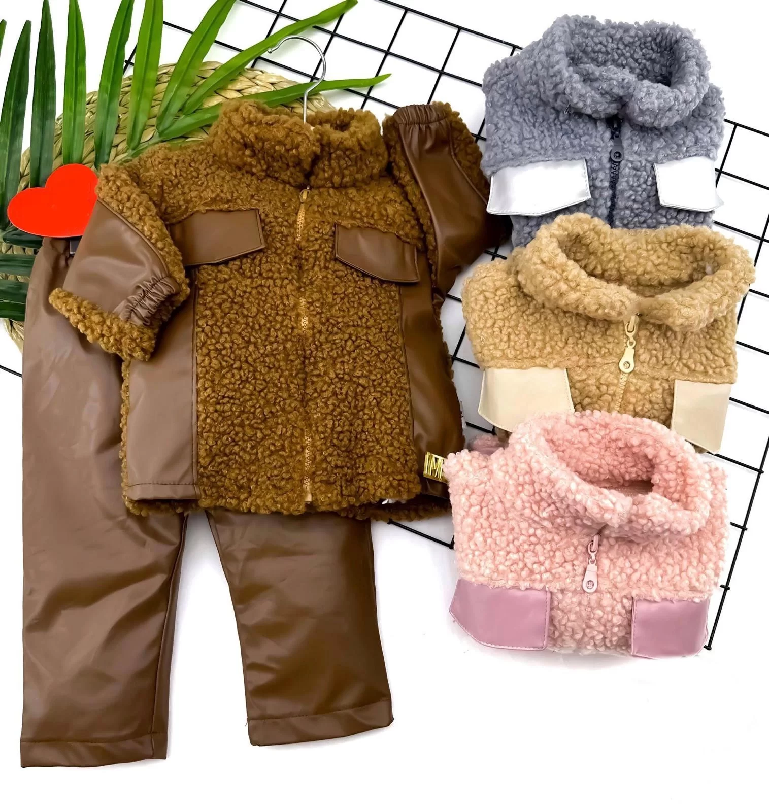 9-12-18 Ay Cep Kapaklı Welsoft Kumaş Derili Fermuar Kapamalı 2li Kız Erkek Bebek Takımı Kahverengi