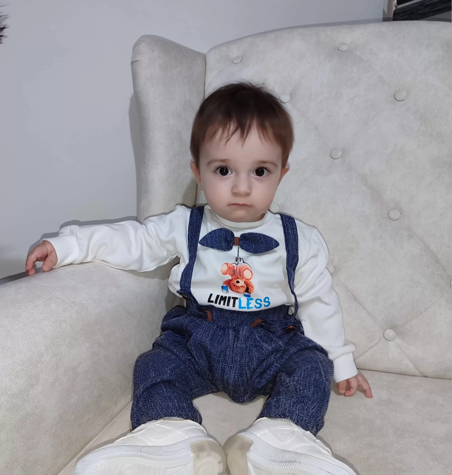 9-12-18 Ay Papyonlu Sweat Kot Pantolon 2li Erkek Bebek Salopet Takımı Lacivert adet