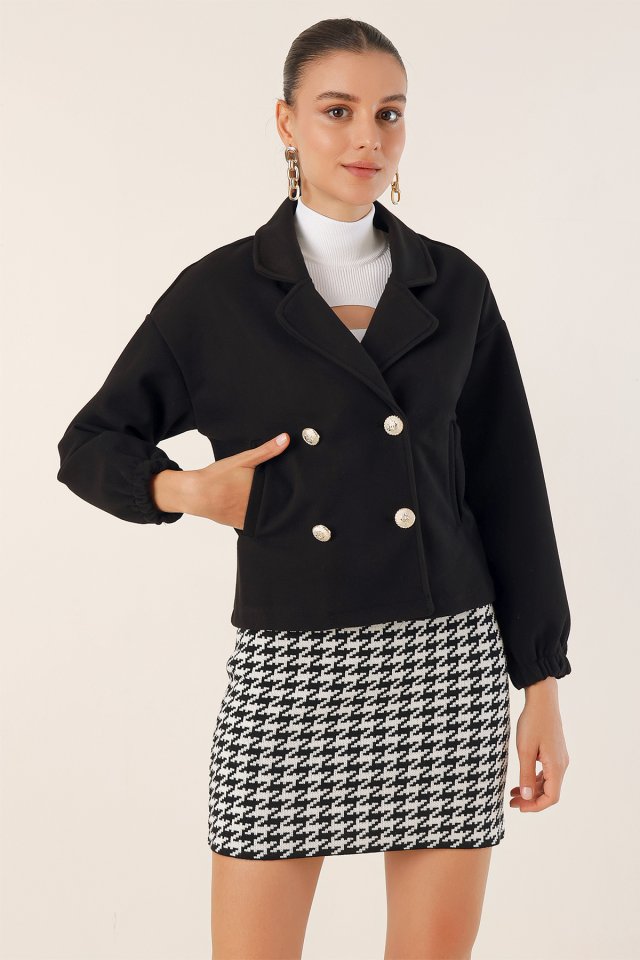9117 Kruvaze Yaka Crop Ceket – Siyah