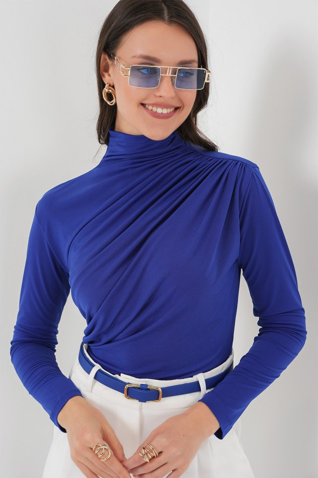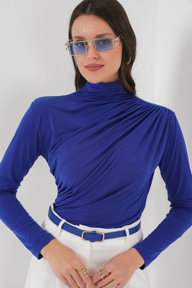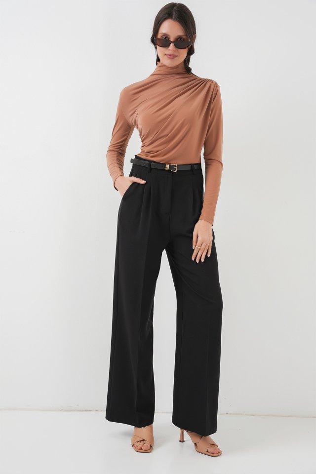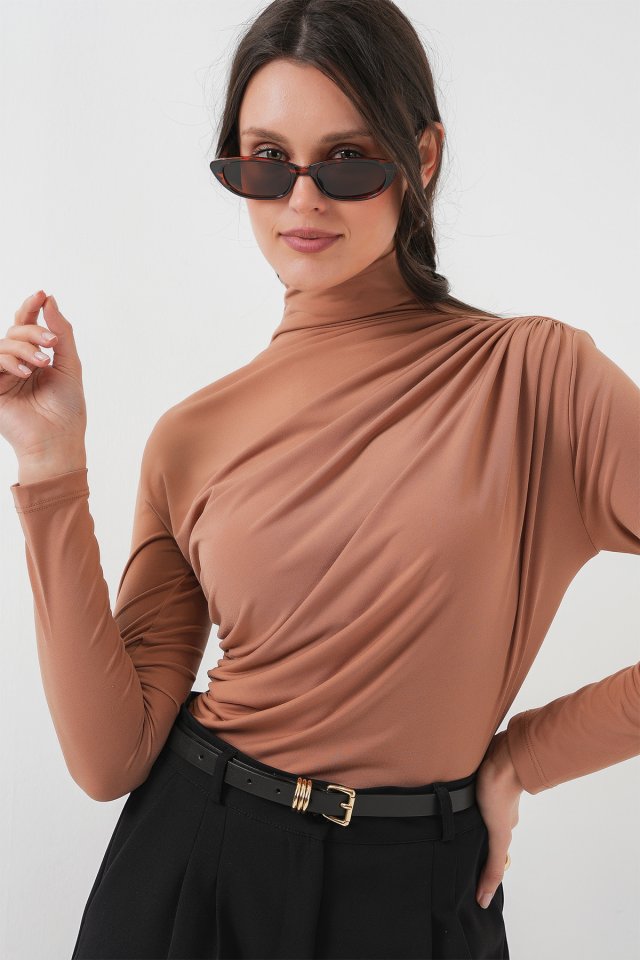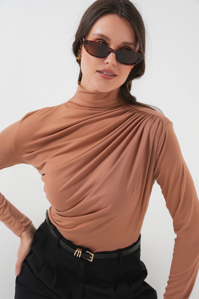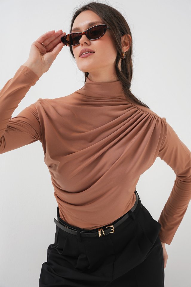 925 Büzgü Detaylı Sandy Bluz – Kahverengi