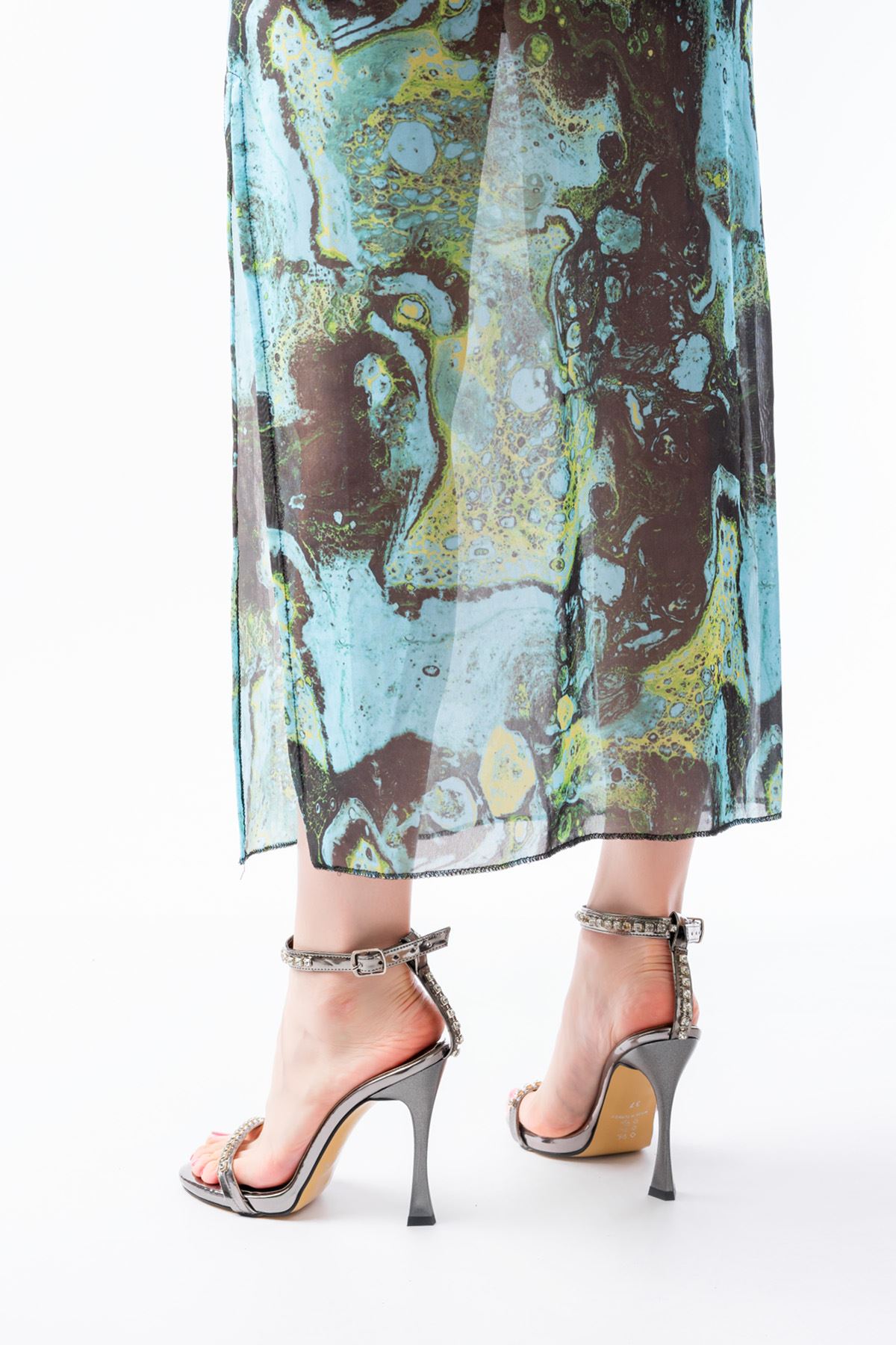A-30 Platin Taş Aksesuarlı Platformlu Topuklu Kadın Terlik