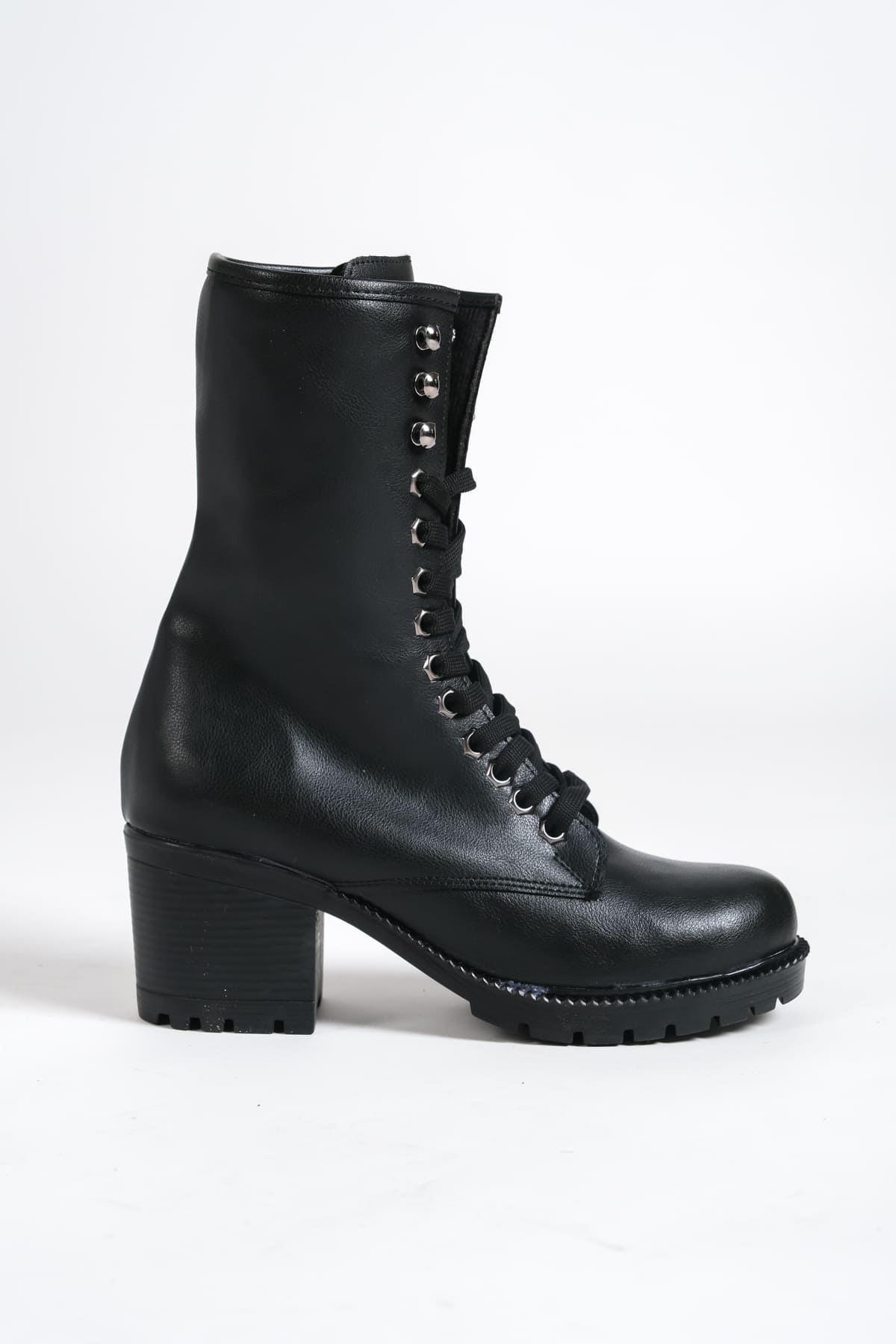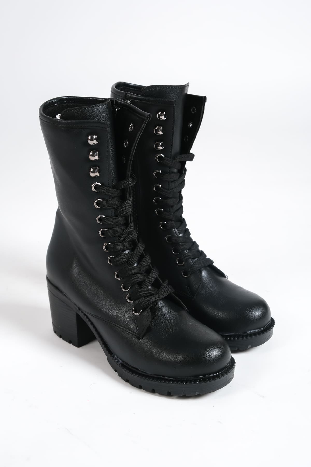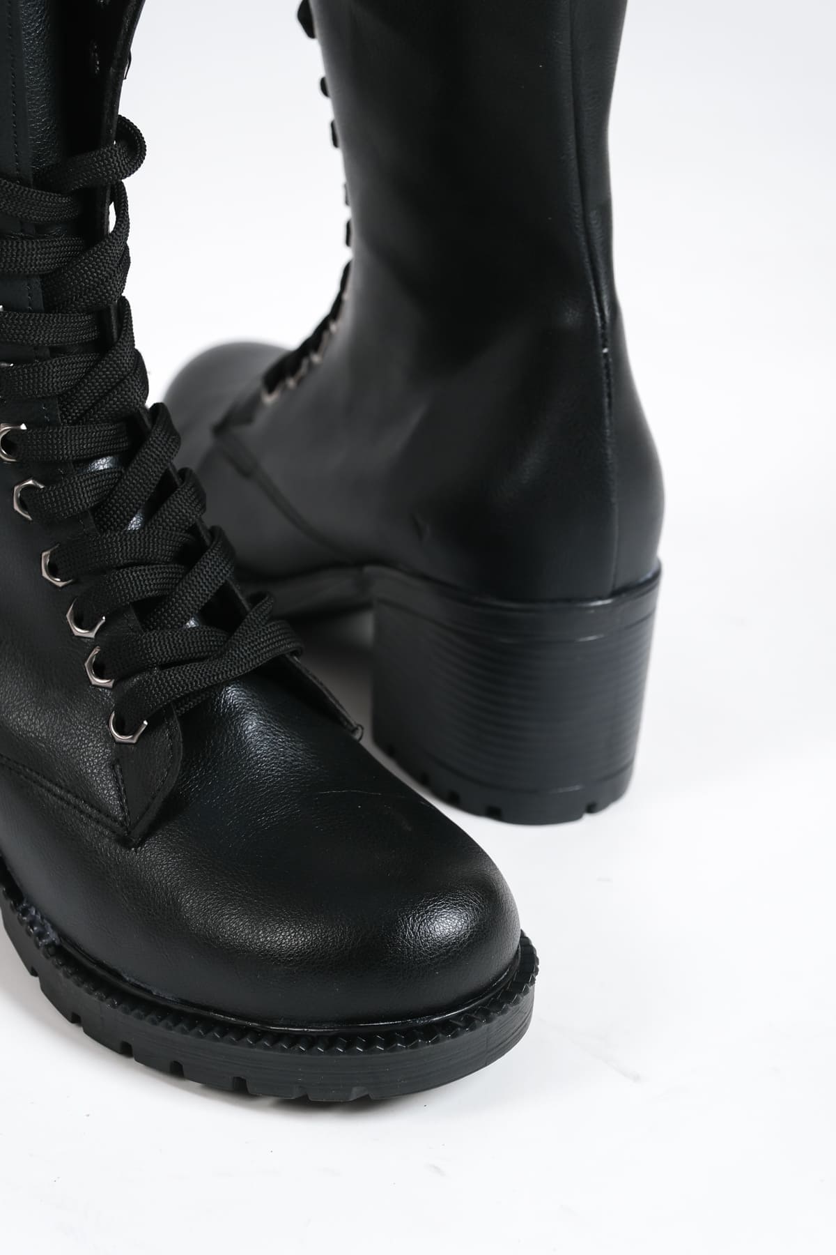 ALDA Bağcıklı Ortopedik Taban Kadın Çizme CST – Siyah